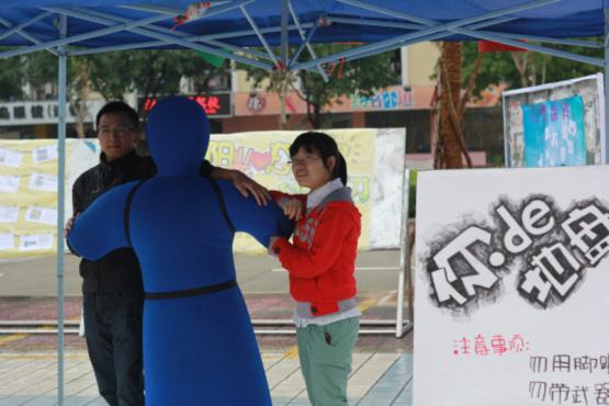 本次活动的形式是以心理图片展出为主,更有心理测试,心情涂鸦,压力宣泄等各式活动。活动现场,工作人员细心引导同学们观看各式各样的图片,同学们还可以在现场填写心理压力评测表,该表在活动后将交由专业人士为同学们认真分析,评测反馈结果将告知学生本人,使同学们能对自身有一个较为清晰的认识。同时,本次活动中的心情涂鸦为同学们提供了一个倾述自己心情的平台,“闪电”飞镖与压力宣泄区,也给同学们带去了欢声笑语,可谓“阳光”十足。其中由校心理健康教育辅导中心宣泄室借出宣泄人偶无疑是本次活动中最为吸引同学眼球的亮点,其集趣味与压力宣泄于一体的功能获得了同学们的一致热捧与喜爱,同学们更亲切的称呼其为“小哥儿们”。