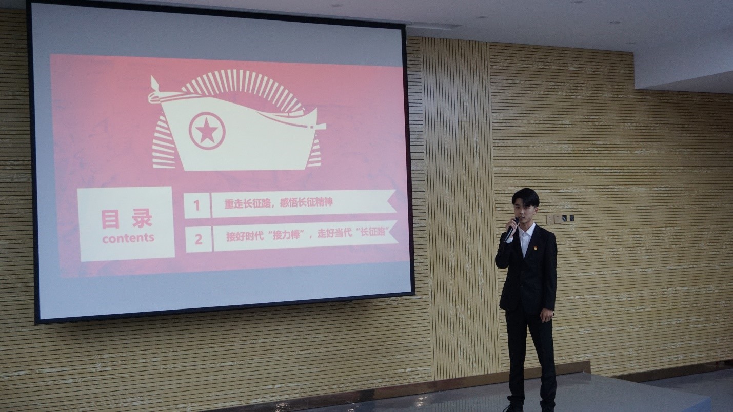 第二位带来微党课的是电气工程第三研究生党支部书记赵鹏飞,他的微党课主题是《长征》。赵鹏飞同志讲述了红军长征的艰难历程,纪念中国工农红军长征胜利整整85年载。红军长征的伟大胜利改写了中国革命的历史进程,并深刻地影响了世界格局。长征不只是艰辛的跋涉,更是精神的凝聚、思想的生长,他倡导中国青年应当接好时代接力棒,走好当代长征路。