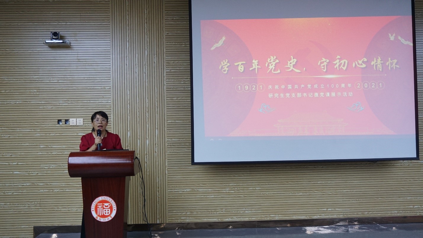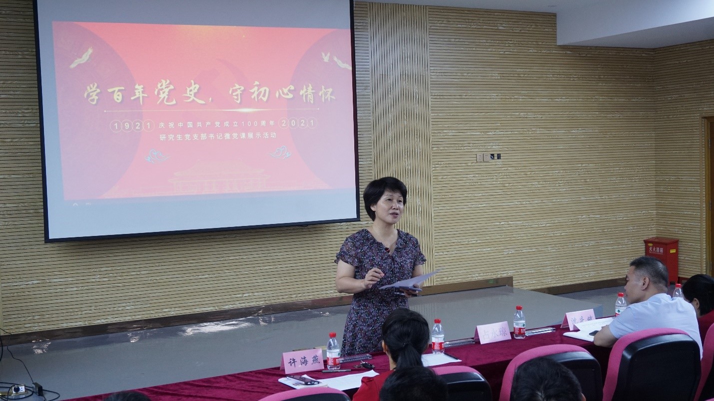 许海燕老师为微党课活动做了精彩的点评,高度认可此次微党课活动的举办成效和赞扬了微党课近几年来取得的优秀成果。她表示7位书记微党课所讲的故事虽是微小的,但是意义很深远,并且非常紧密联系当前党史主题和研究生实际生活,希望通过此次书记讲党课的学习方式,能够带动每位党员学习党史的积极性,提升党员同志们的政治素养。