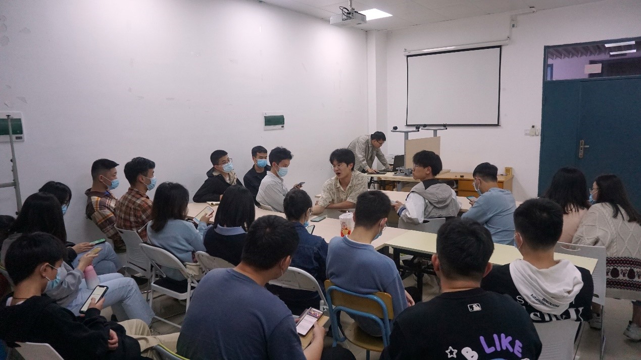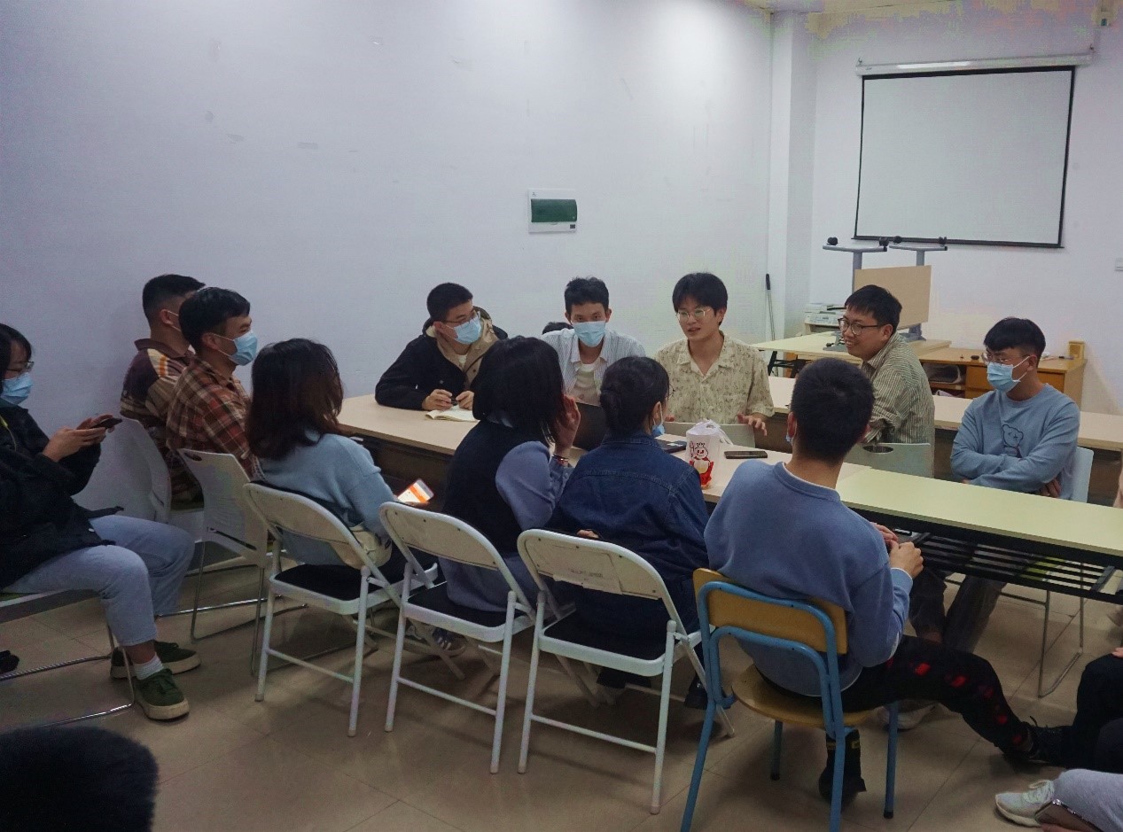出席本次交流会的有国赛获奖同学雷克波、李继辉、翁涵迪、吴思捷、黄鹏、谢志强以及黄浩阳。交流会一共有两个环节,第一个为参赛经验分享,第二个为互动环节,整场会议气氛融洽,学术氛围浓烈。