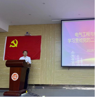 中国式现代化五大特征之一是人与自然和谐共生的现代化。宣讲着重围绕“学生骨干如何在未来实现碳达峰、碳中和的目标上作贡献”。他向大家分享了几组数据:近年来福建省以风电、光伏发电为代表的新能源发展成效显著。广大福大电气学子应当努力学好专业知识,在能源转型主战场上发挥自身的专业优势,在新能源发展的一些制约因素,如电力系统对大规模高比例新能源接网和消纳的适应性不足等问题上进行深入钻研,为其作出有效的学术贡献,助力“双碳”目标的达成。