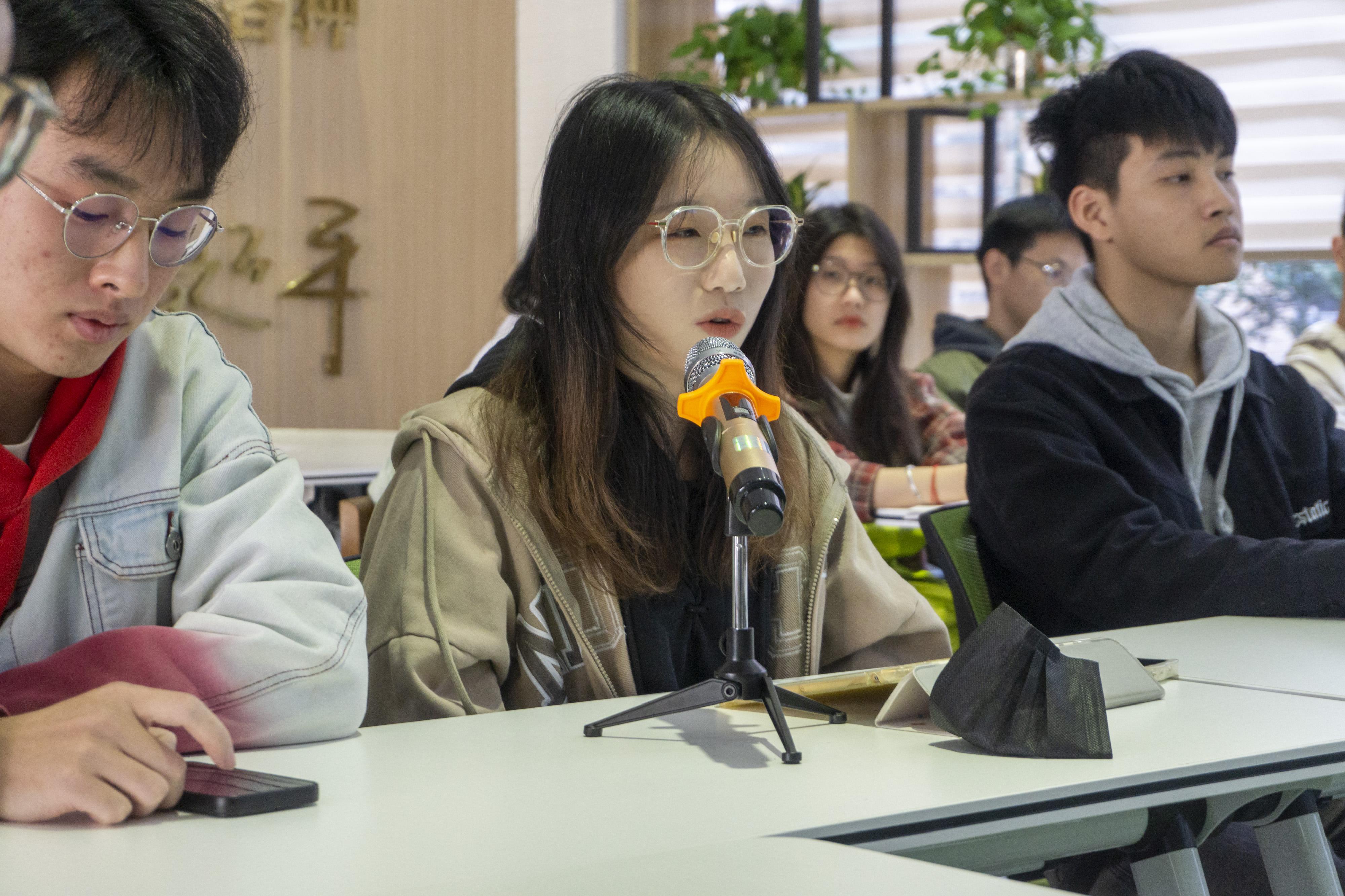 林小凤同学首先介绍了揭榜挂帅、红色专项赛道与主赛道的区别。接着她谈到,在备赛过程中,团队是制胜的关键,良好的氛围和高效的沟通能够促进团队的发展,从而使团队走得更加长远。她认为,在线下路演时,可以多观察其他团队的作品,挖掘其中的创新点和可行性,取长补短,提升作品竞争力。