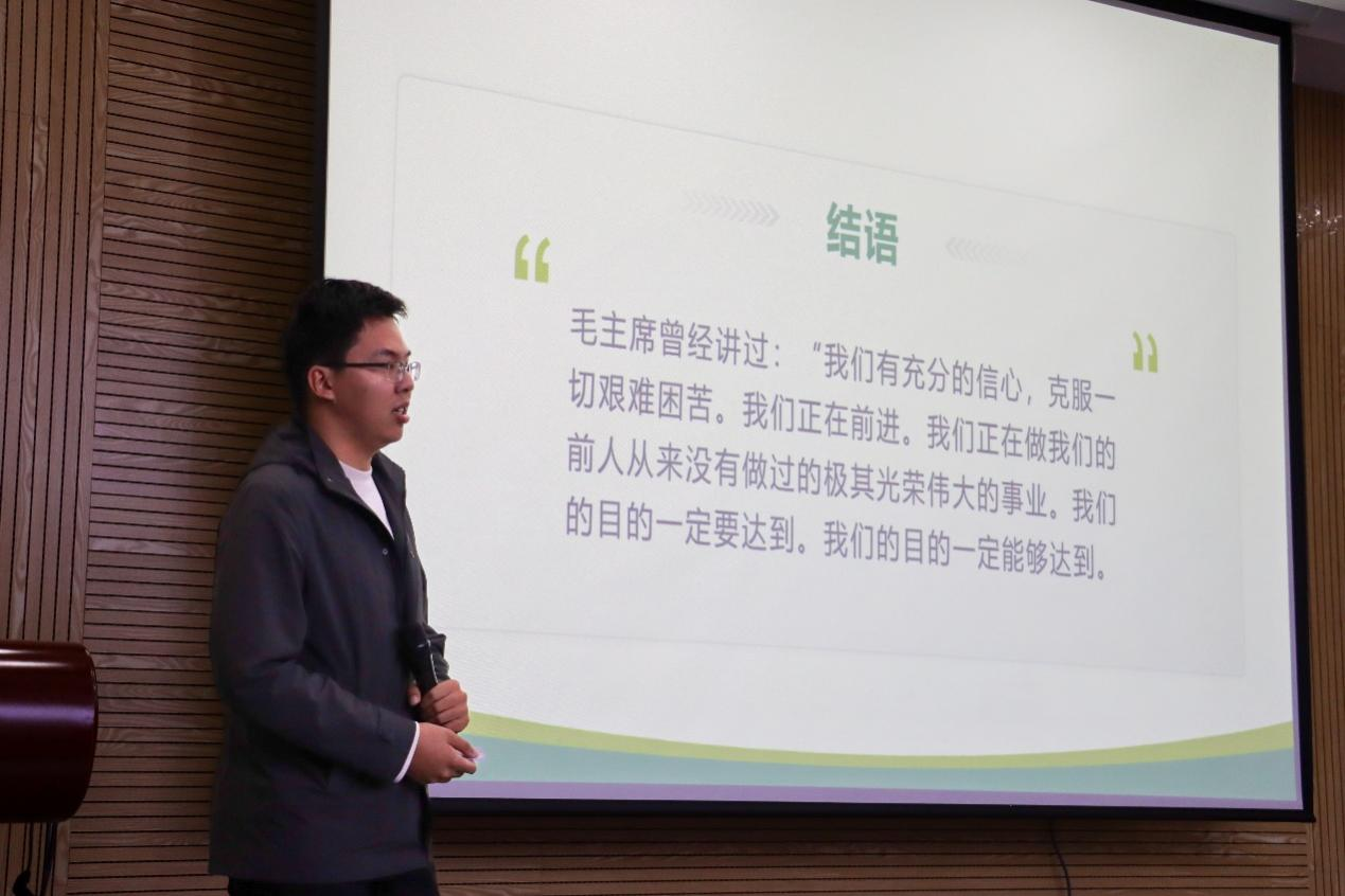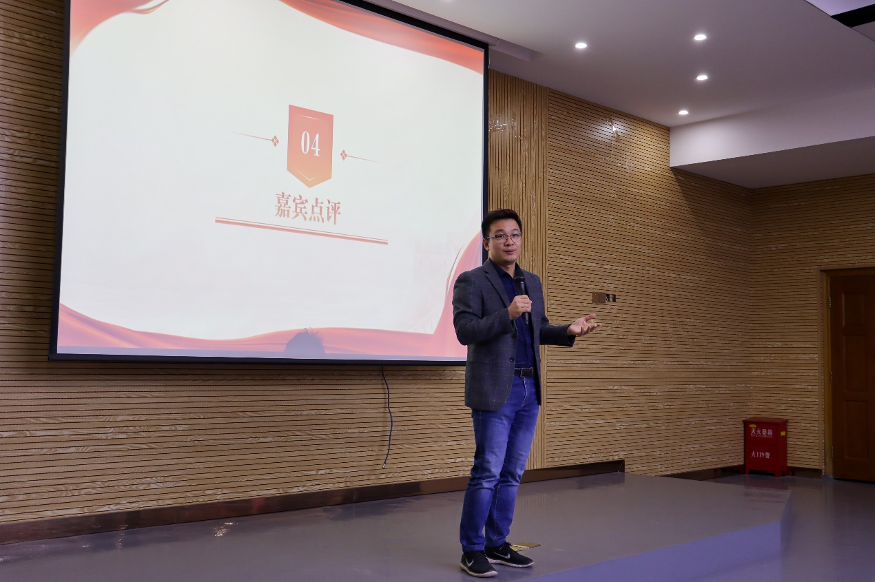 比赛临近尾声,李金土老师对本次比赛参赛选手的表现进行了点评。李老师肯定了选手们的精心准备,为大家呈现出一场生动的爱国主义教育课。同时,李老师鼓励同学们运用姿态语言和适当的背景音乐增强演讲的表现力和感染力。