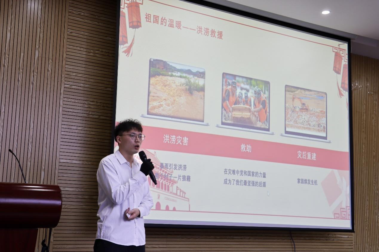 于新楚楼北230举办“同呼吸、共脉搏,我与祖国双奔赴”主题演讲比赛。院团委书记李金土,辅导员许海燕、尹万东、唐龙翰、黄莹莹、陶可佳和卢煜出席了演讲比赛。