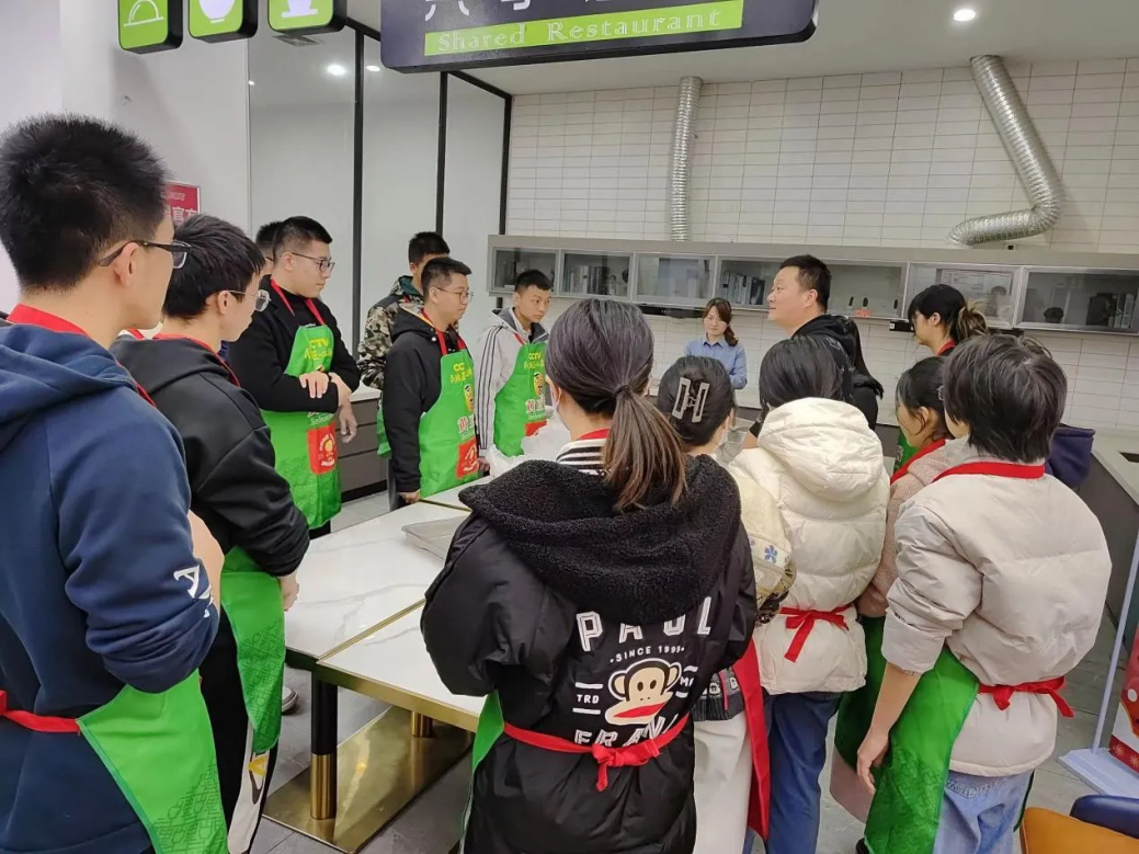 在介绍完制作步骤后,开始进入实操阶段。首先是和面步骤,这一环节需要较大的力气,因此通常由经验丰富的师傅来完成。为了让学生们亲身体验,几位同学也尝试了亲手和面,尽管这对没有经验的同学们来说有些吃力。和完面后,下一步是将面团分成小剂子并包馅。糍团的制作相对简单,大家在听完讲解后基本都能掌握要领。看到师傅示范得轻松,但当同学们自己动手时却出现了各种问题。有的同学因为皮太薄而馅太多导致露馅,有的则是皮太厚而馅太少。看到这种情况,师傅耐心地指出问题所在,并再次强调了包糍团的正确要领。他指出,在拿到分好的小剂子后,应先将面团揉成球形,然后再慢慢地将其捏扁。同时,包馅前最好将皮整成漏斗形,皮的边缘捏薄一些,这样才会比较好封口,皮也会更均匀。在师傅的指导下,大家逐渐掌握了正确的制作方法,成品质量得到了显著提高。