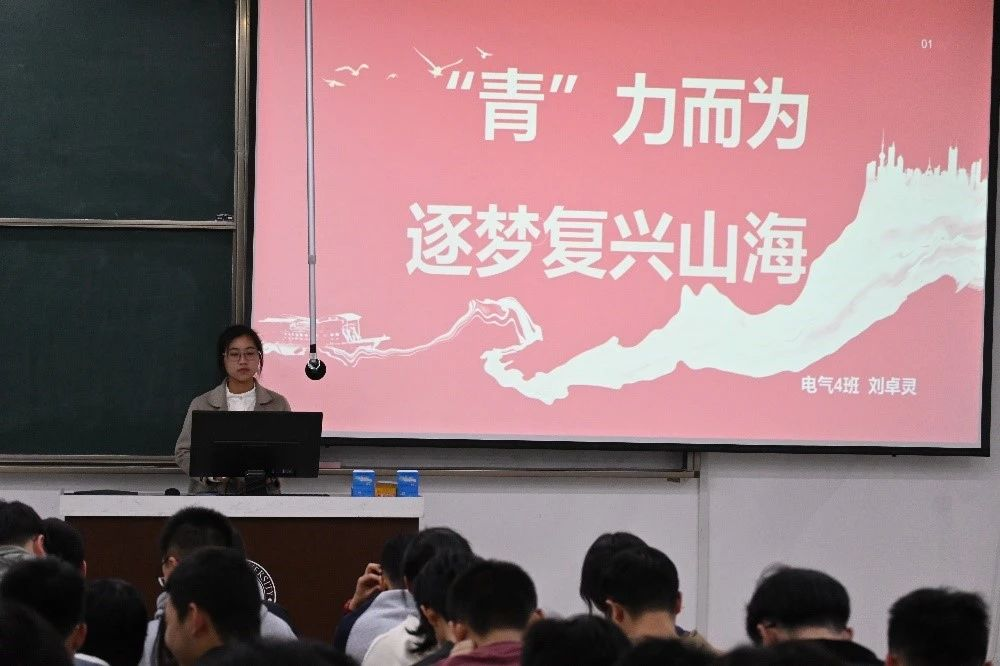 四号选手刘卓灵从青年出发讲述了青年于国家的重要性及使命。列举了众多青年有为的例子,并以视频的形式让大家直观地感受到新时代青年“走出去”,让世界听到中国声音的新变化,呼吁电气青年们“青”力而为,逐梦复兴山海。