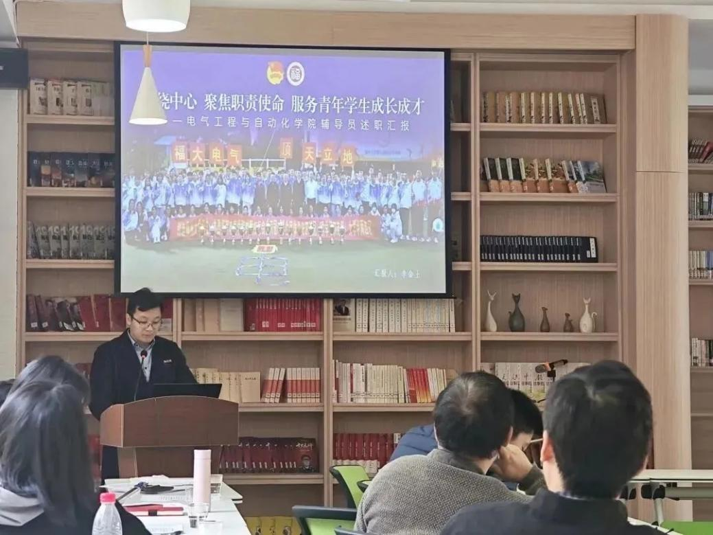 最后,潘志辉书记总结讲话。他对辅导员们一年来的辛勤付出给予了高度肯定,并强调此次述职不仅是考核,更是一次成长与交流的机会。潘书记希望辅导员们能够以此为契机,进一步严格要求自己,用心、用情、用力地履行职责。他强调,辅导员们要树立规矩意识,注重执行力的培养,在工作中始终保持专心、细心和精心的工作态度。同时,要对学生充满温情、激情和倾情,关注学生的成长需求,及时化解学生思政工作中的难题。他指出,辅导员们要不断提升自身的政治素养、理论水平和职业素质,不断总结工作经验,深入思考学生工作的规律和方法。最后,潘书记号召全体辅导员们继续保持热情和毅力,为学生的成长和发展贡献自己的力量。