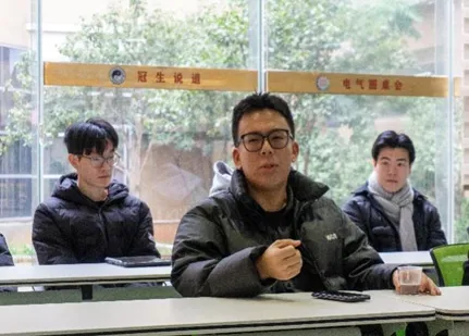 接着,由夏圣垣校友分享交流经验。他以三个“不设限”向同学们分享交流经验。一是“研于真理,科研报国”。重庆大学为电气学子提供了丰富的科研创新资源,国家级科研平台和高精尖实验室的大门永远向电气学子敞开。在导师李剑教授的国家重点研发计划项目的支持下,为解决海量物联网终端软硬件碎片化问题,他不断研发高性能、低功耗感知终端并以此获得了诸多奖项。二是“善于开拓,实践落地”。他在重庆大学去年举办的第八届中国国际大学生创新创业大赛,使用先进传感技术开发了智能便携式心电贴,荣获2022年中国国际智博会专利孵化展金奖。此外,他积极引导博士生科研成果服务乡村振兴,深度融合科创项目和社会实践活动,希望在祖国大地最需要的地方留下其科研成果的痕迹。三是“勇于担当,进取不息”。他提到学校不仅教会他们“研究学术、造就人才”,更让他们明白“佑启乡邦、振导社会”的使命。身为心怀天下的学子,我们不应独善其身,而要勇于担当。