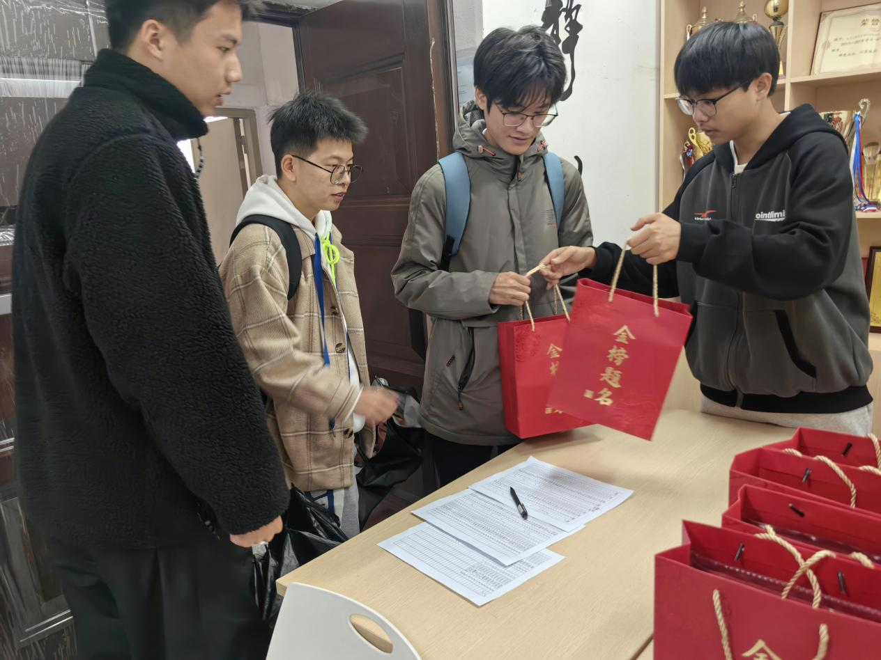 随后,各位领导将“暖心大礼包”送到每位同学手中,红色的礼袋上烫有“金榜题名”四个金字,寓意颇丰。希望在全院师生和同学们“脐”心协力的备战下,同学们都能心想事“橙”,金“棒”题名,用最“旺”的运气考出最“旺”的成绩。礼轻情更重,小小的礼物包含无限的祝福和浓浓的师生情谊,让备战的学子倍感贴心,虽“研”途漫漫,但也温暖常伴。