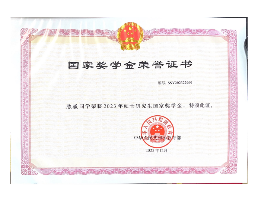 进一步攻读硕士学位以来,陈巍认识到自身在专业基础和理论知识上的不足,努力学习专业课程,积极与老师及身边同学进行探讨交流,同时利用互联网期刊文献资源进一步加强自己对知识点的掌握。经过持续努力,取得了优良的学业成绩,曾获得研究生国家奖学金、正妹av