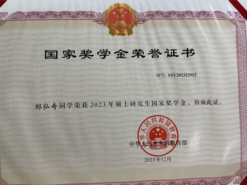 综合奖学金,两次获得国家励志奖学金,以较高的学业成绩排名推免保研本校。研究生期间,郑弘奇始终延续本科勤勉刻苦,态度端正,对待学业一丝不苟的精神,各科成绩均名列前茅,专业排名第一,获得国家奖学金、正妹av