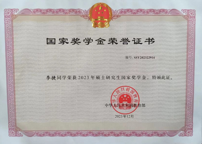 自研究生入学以来,李捷深知在研究生学习阶段,无论是专业理论知识的学习还是科研工作,都需要以更高的标准要求自己。从研一开始,李捷就认真学习专业知识,秉持精益求精的学习态度,积极探索适合自己的学习方法,提高学习效率。在明确目标的指引下,他坚持不懈,认真钻研,与同学交流课程上所学到的知识,相互取长补短,积极向老师请教课程学习中所遇到的问题难点,巩固所学知识,最终以优秀的成绩完成了学院规定的各项课程,研究生期间学业平均成绩87.83分,部分课程成绩达到90分以上,并获得研究生国家奖学金、正妹av