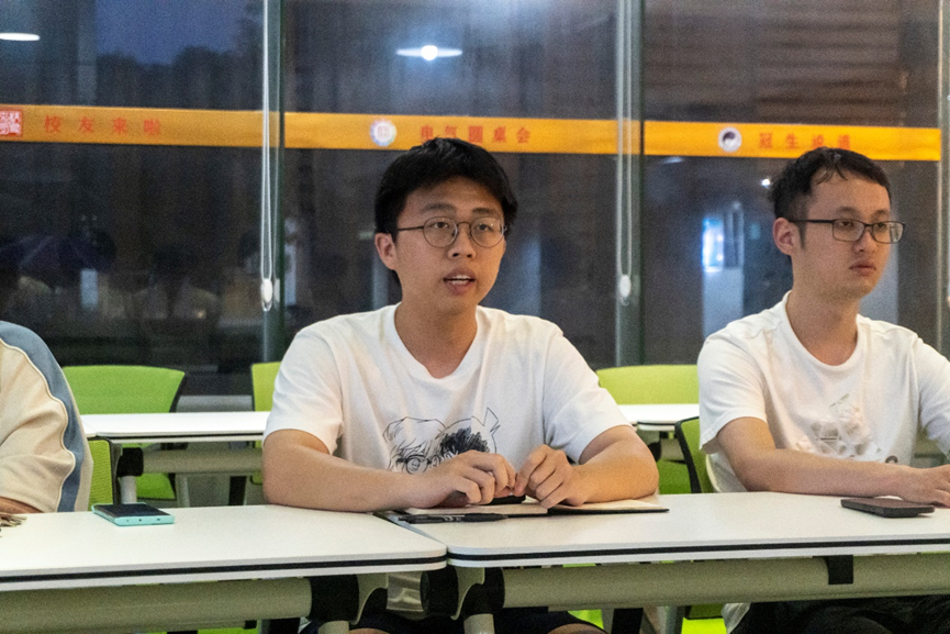 研会宣传部负责人邹勤智同学提到,书中每一个故事都深刻展现了习近平总书记薪火相传的“青年观”、念兹在兹的“青年情”、厚望重托的“青年志”。他号召大家把自己的小我融入祖国的大我、人民的大我之中,成长为国家经济社会发展的栋梁之材,在建设创新型国家和世界科技强国中担当生力军,奋力书写为中国式现代化挺膺担当的青春篇章。