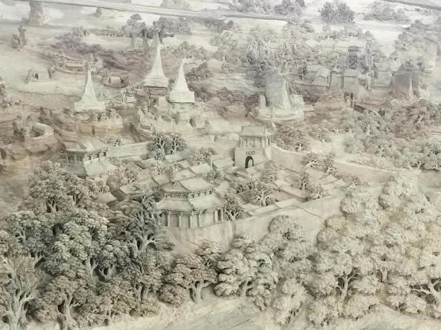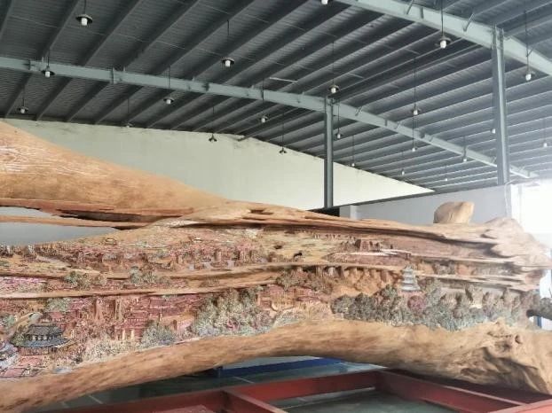 队员在自由参观木雕《百里兰溪图》的现场雕刻