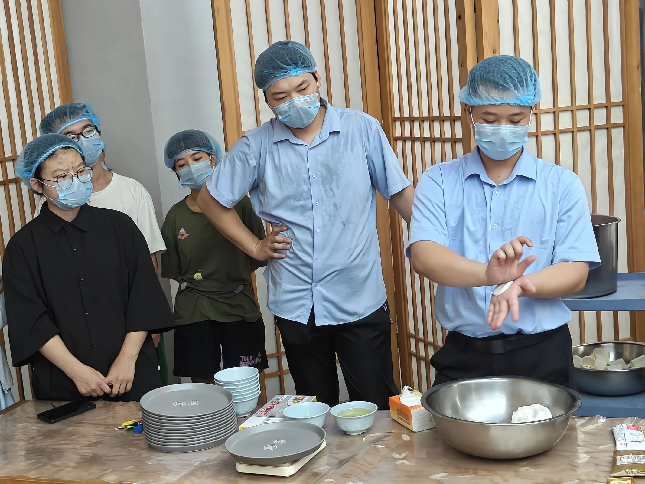 9月15日下午同学们在海棠园集合,由师傅在现场手把手教同学们制作冰皮月饼。