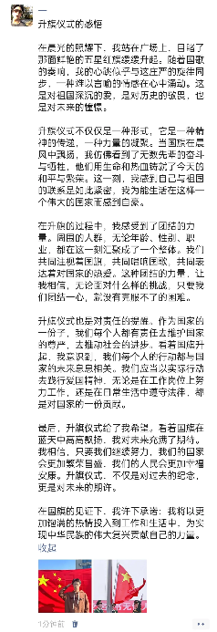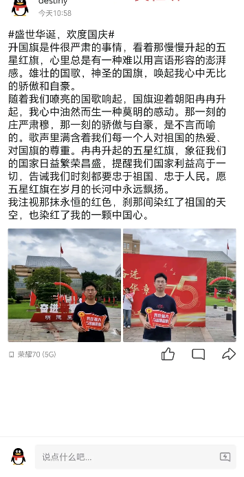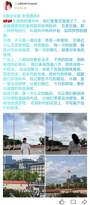学子留下了与五星红旗庄严且难忘的记忆,并以自己的青春之笔歌颂了祖国的繁荣昌盛,抒发了内心的自豪之情。