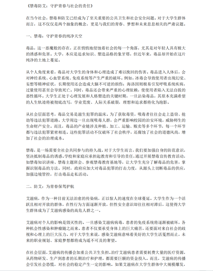 本次“禁毒防艾”主题教育系列活动取得了圆满成功,在安全知识普及与意识提升方面取得了显著成效。红十字会通过多维度、全方位的宣传教育活动,有效增强了同学们的自我保护意识与安全防范能力,在校园内营造出人人关注安全、事事重视安全的良好氛围。不仅如此,通过积极参与活动,同学们不仅能够成为自身生命安全的守护者,还能够树立珍爱生命,保护自己的意识,为构建平安校园、和谐社会贡献了不可或缺的青春力量。