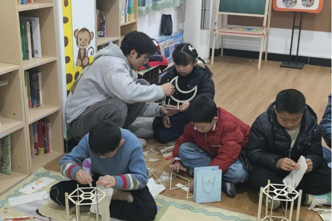 随后,实践队带着小朋友一齐制作新春灯笼,在迎接春节到来的同时,感受中华春节文化的内涵,传承中华春节的习俗。灯笼的历史源远流长它承载着中华民族千年的历史记忆,见证了社会的发展变迁。在春节这个传统节日中,悬挂灯笼这一习俗得以延续,让后人能够直观地感受到先辈们的生活方式和文化传统,是连接过去与现在的文化纽带。小朋友们非常喜欢制作灯笼的活动,不少小朋友在制作完一支灯笼后纷纷表示要再做一支。最后,实践队与小朋友们以及他们亲手制作的灯笼留下合影。