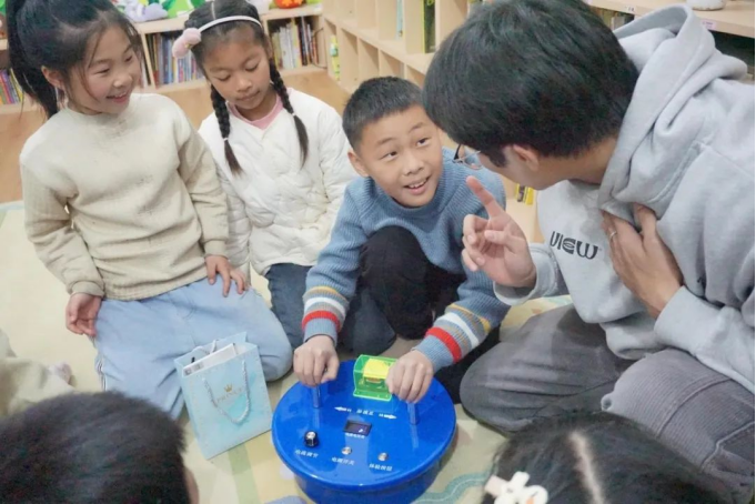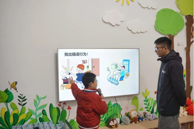 下午,实践队来到洋口镇大爱社区的活动中心布置场地。在小朋友们到齐了之后,主讲人张滨新开始了用电安全知识科普课堂。在上课过程中,小朋友时而安静的听张滨新讲用电时的注意事项,时而积极参与到与张滨新的互动。在课程过半时,实践队队员拿出的触电体验仪深受小朋友喜欢,纷纷涌上前进行体验,在理论与实践的结合下,小朋友们对安全用电有了深刻的理解。课程的最后以“随堂小测试”结尾,在为小朋友巩固知识点的同时也再度活跃的现场的气氛,同时实践队也为回答问题的小朋友提供了精美小礼品。