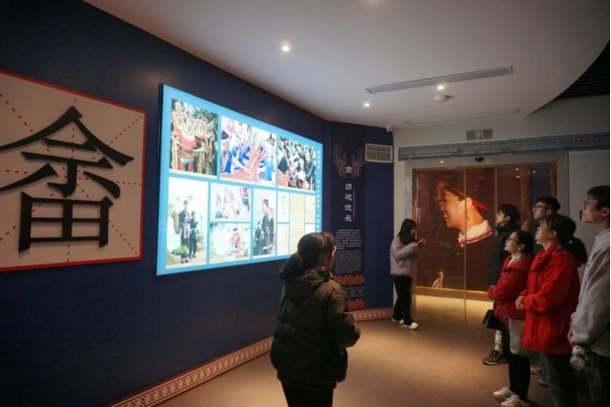 紧接着,实践队来到当地馆,通过对畲族传统文化,传统民族服饰、特色建筑及人文风情进行学习调研,增进队员对畲族文化的进一步了解与认识。随着介绍,实践队员了解到畲族人特有的春节习俗,如:从农历十月开始,畲族人就用糯米酿制“过年酒”,并用糯米、灰碱水制作年糕(糍粑)。吃糍粑是畲族春节的重要特色之一,象征着团圆和甜蜜;”汲新水”:主妇争先恐后到井边挑“新水”,回家煮线面作为早餐,寓意家人平安长寿;“摇竹娘”:孩子们跑到竹林里“摇毛竹”,边摇边唱,祈愿像竹笋一样茁壮成长;举行对歌、“打尺寸”、登山比赛、打秋千等文娱活动,充满欢乐气氛等等活动。