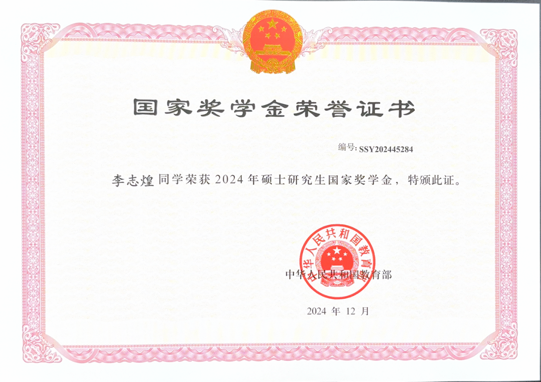 在研究生阶段,他始终以勤勉笃行的态度投入学术钻研。面对高强度的课程与科研任务,他坚持精益求精,每日最早抵达实验室,最晚离开,利用碎片时间研读前沿文献,系统梳理学科脉络。凭借不懈努力,他在2024年以学业成绩第3的优异成绩获得正妹av