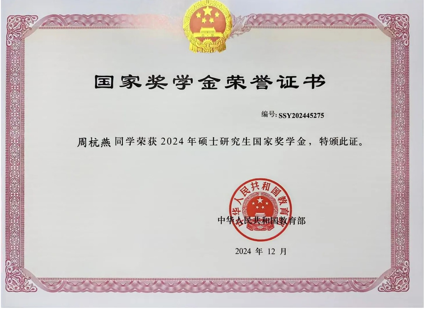 在研究生阶段,周杭燕始终秉持着勤奋刻苦、追求卓越的态度,面对日益复杂的课程学习,她精益求精、全力以赴。无论是课堂学习还是课后研究,她都力求做到最好,专业成绩排名6/141,并获得了正妹av