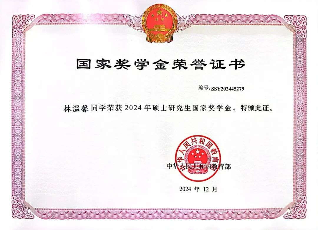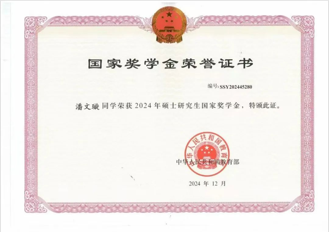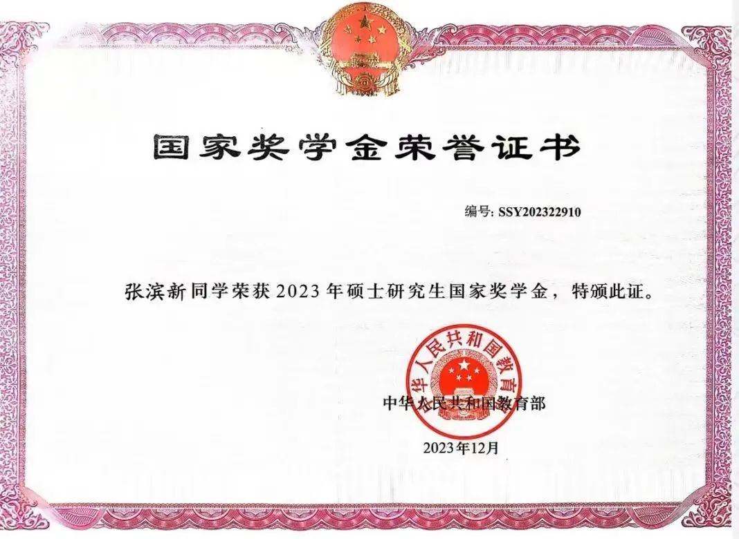 研究生期间学业综合测评成绩专业排名2/22,获得2023年和2024年国家奖学金、中期优秀学业二等奖学金等;并获评正妹av