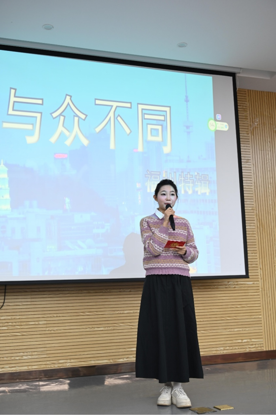 随着第三轮比赛的开始,现场气氛愈发热烈。每位选手都使出了浑身解数:有的台风稳健大气,展现出专业主持人的风范;有的妙语连珠,带动全场观众互动;还有的创意十足,为传统主持形式注入了新鲜活力。他们用实力证明,主持不仅是一门语言艺术,更是一种综合素养的体现。最终邹雨彤凭借“与众不同”节目,对她的家乡福州展开详细的介绍,以绝对的优势获得冠军。