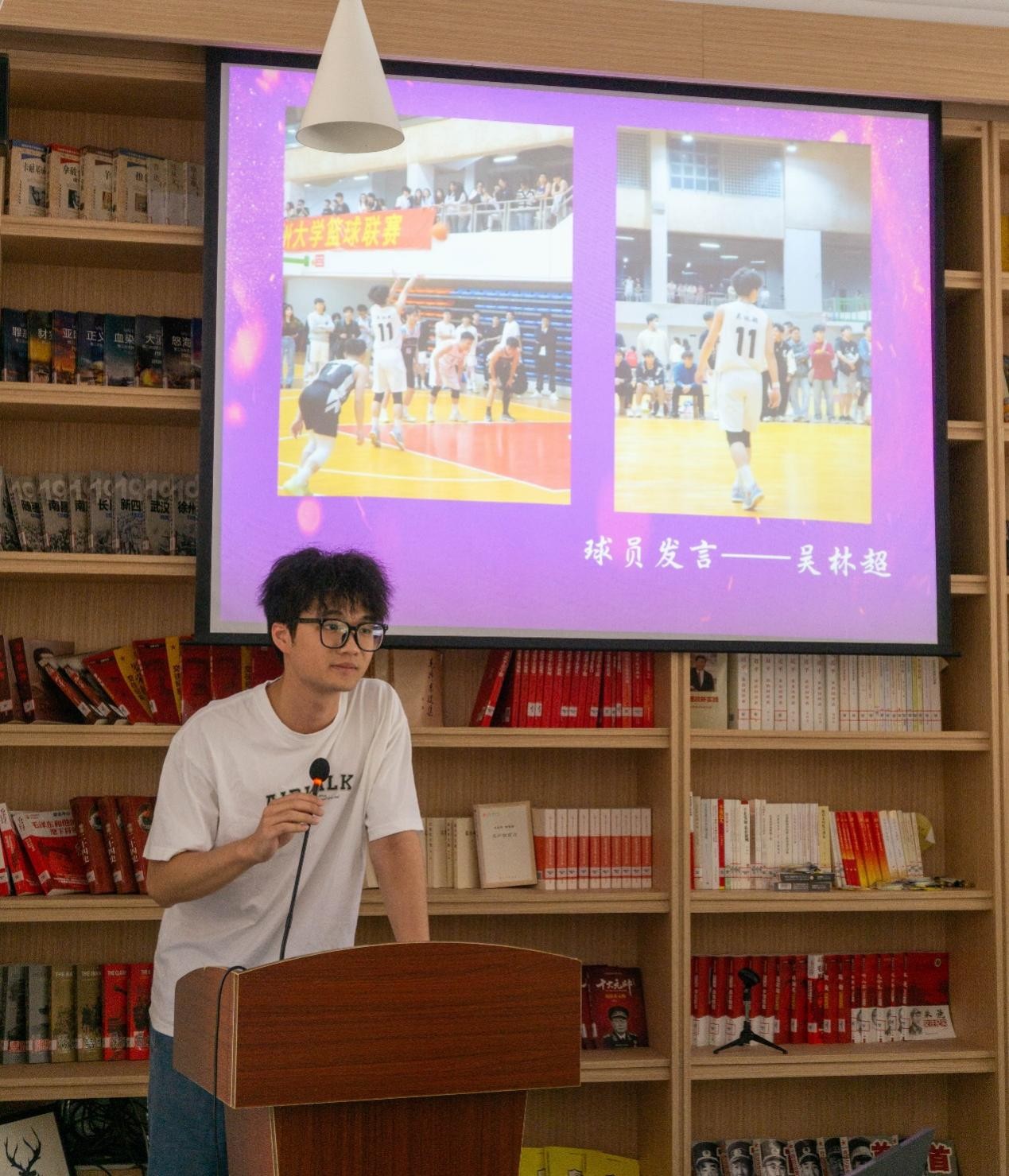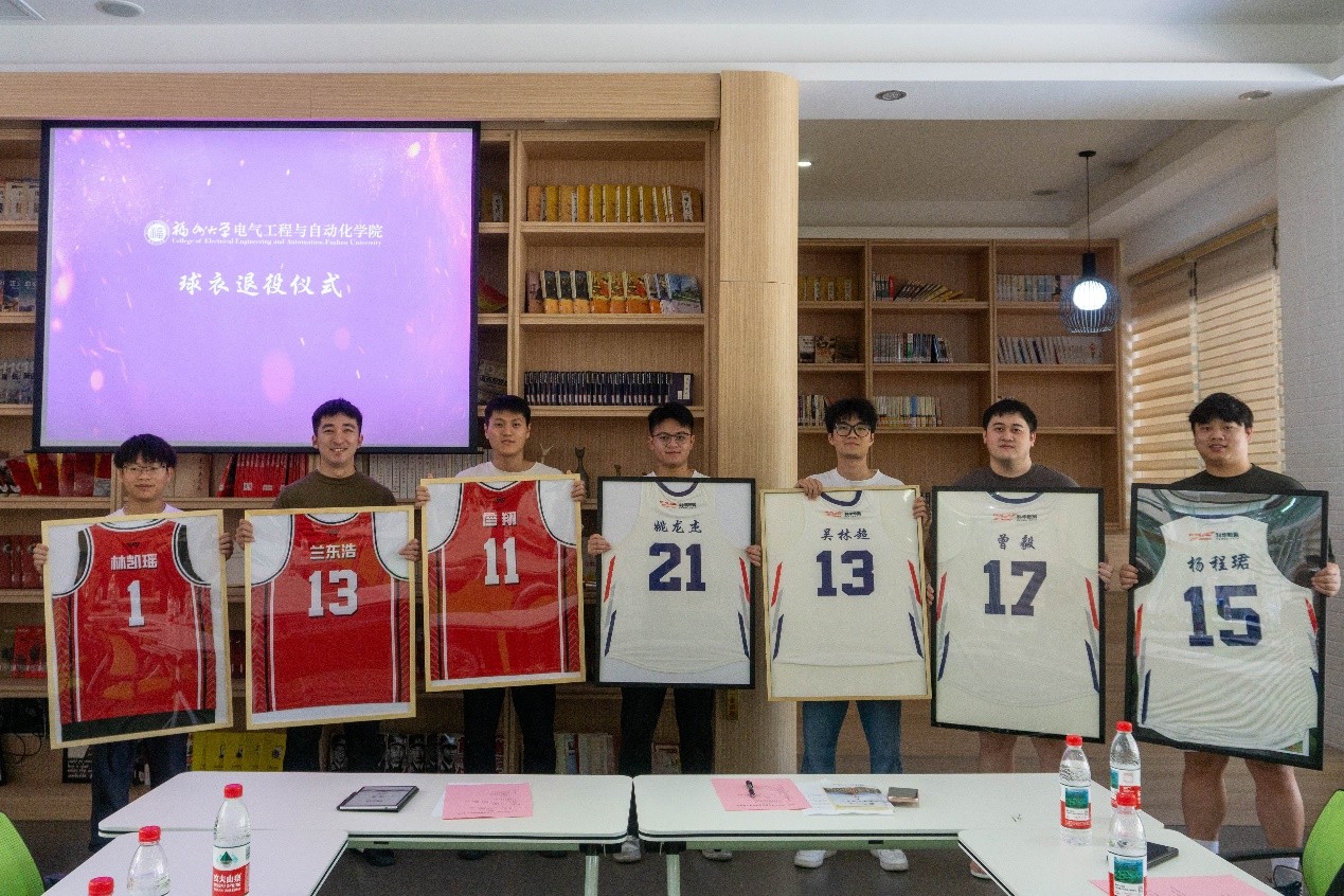 举行——我们共同为学院本科生和研究生联合男子篮球队的7名功勋队员举行退役仪式。这不仅是一场告别,更是一次精神的传承与新征程的启航。学院党委副书记杜领军老师、学院团委副书记梁艳华老师、全体篮球队队员及同学们齐聚一堂,共同见证这一庄重时刻。