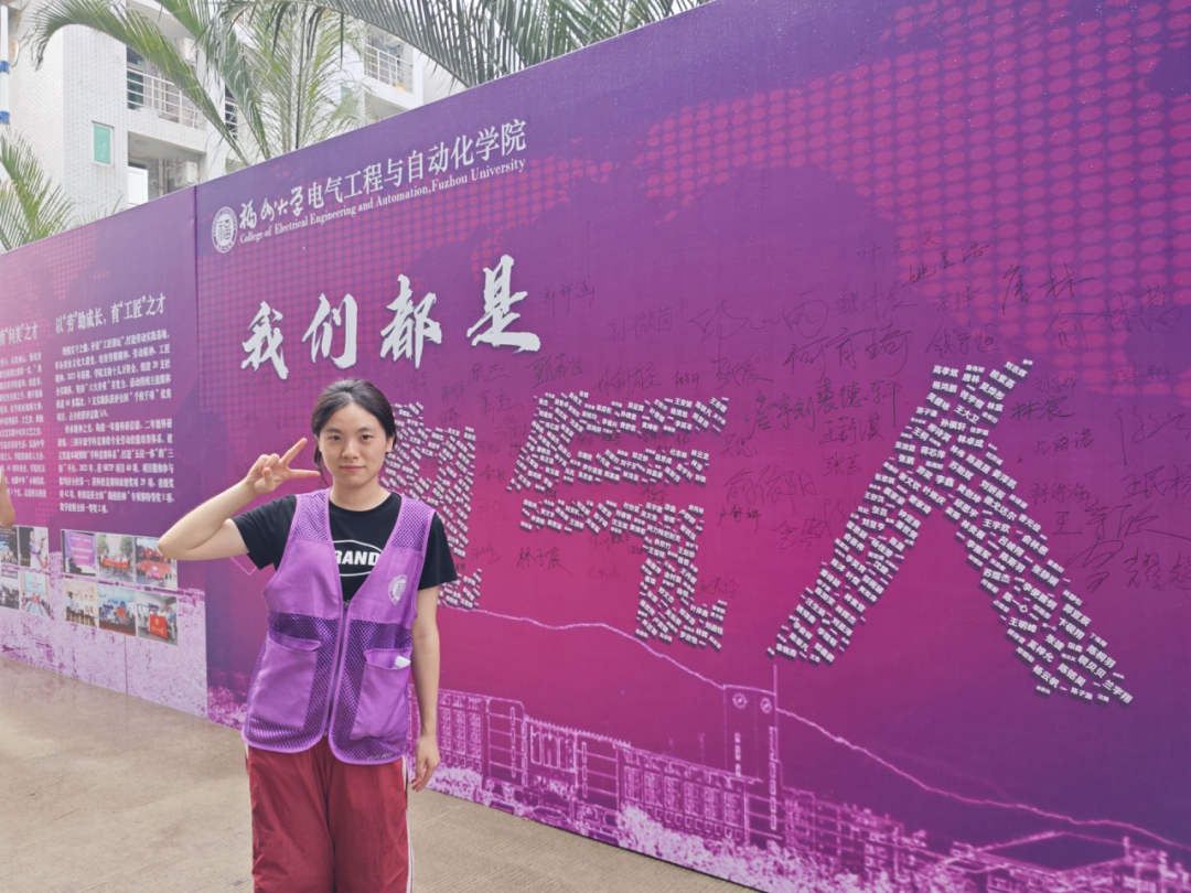 参赛以来的最好成绩;由于多次受到社会人士的资助,她心怀感恩,时常想回报社会,大一寒假返乡时,正值疫情肆虐,于是她主动报名,为宁德市医护子女提供线上辅导志愿服务,为奋战一线的医护人员解决后顾之忧;2023年2月始,她成为朋辈讲师,每周六值班答疑,用简洁通俗的语言帮助同学更好地理解复杂的高等数学、大学物理等科目问题,她也从中发现了知识盲区,实现“教学相长”。她以兴趣为引,以行动为笔,绘就了一幅青春奋进的多彩画卷,展现了新时代青年的蓬勃朝气与责任担当。