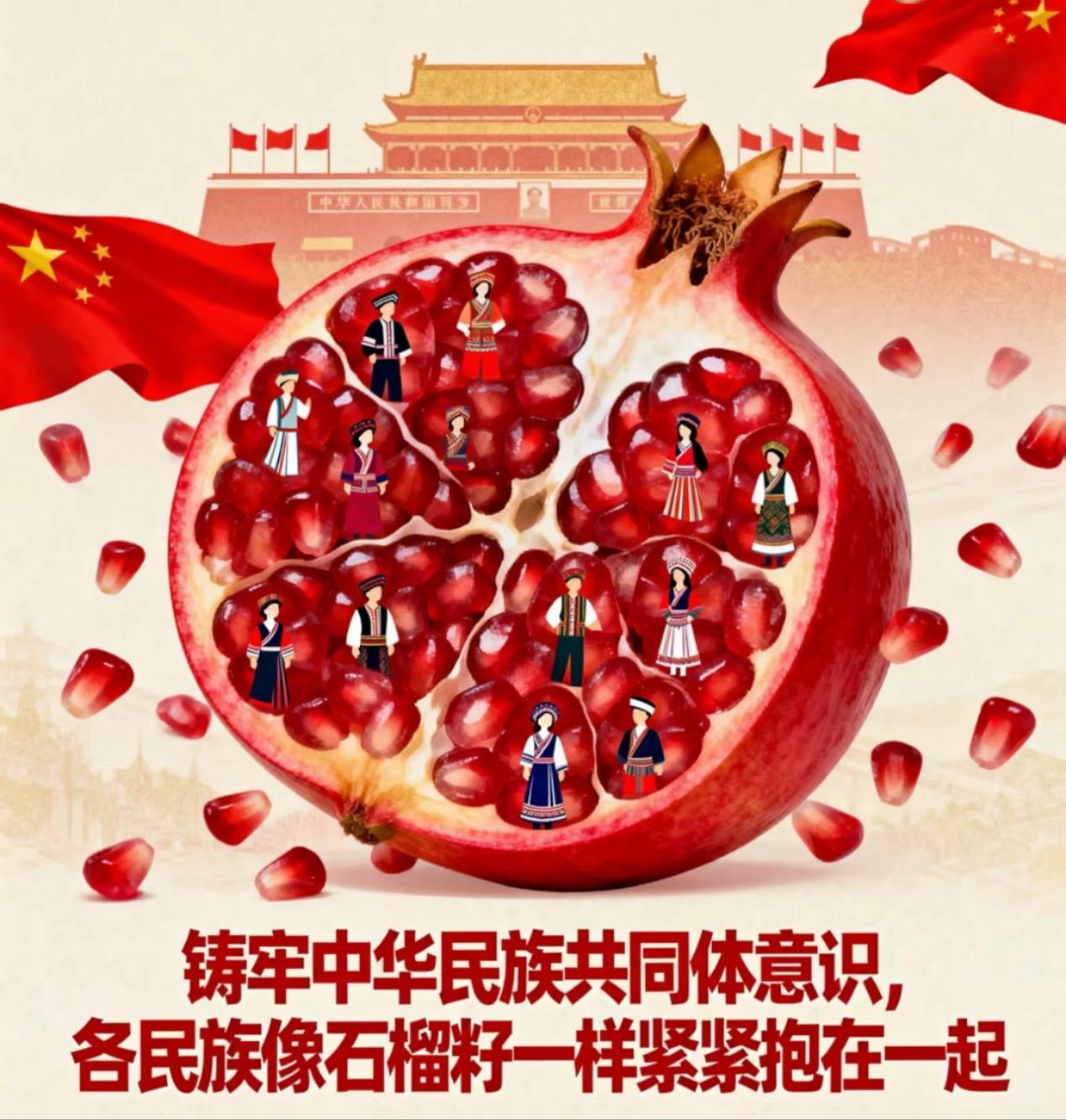 各民族要相互了解、相互尊重、相互包容、相互欣赏、相互学习、相互帮助,像石榴籽一样紧紧抱在一起。