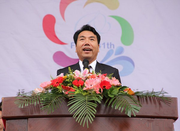 国歌之后,是校体育运动委员会主任高诚辉副校长致开幕词,高副校长对运动员表达了祝福,对学校体育、教育事业发展表示了肯定,并对未来充满了 希望,这番话鼓舞了在场的每一位人员,激发了所有运动员的士气。同时高副校长也表示了对本届裁判员能公正裁定的期许。之后运动员代表陈龙辉、裁判员代表陈 彤也先后上台发言宣誓。