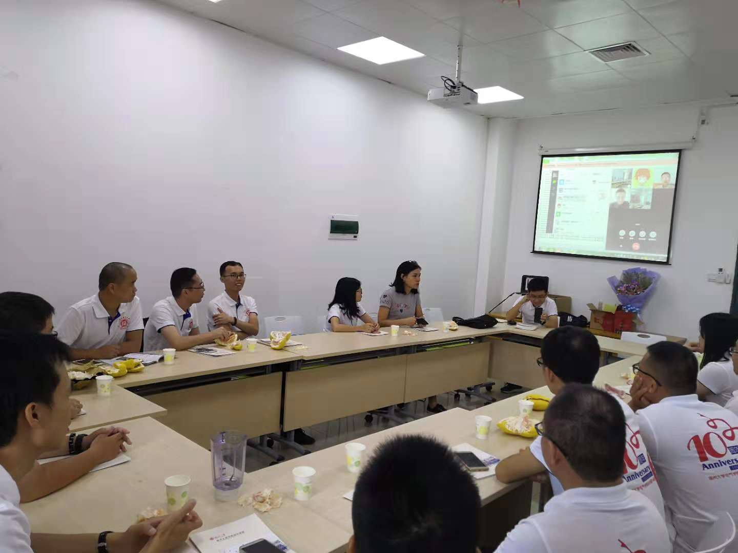 座谈会上,大家一起欣赏了大一大二的各种生活照片以及大三大四的活动照片,这将各位校友的思绪都拉回到了十年前;怀揣梦想,憧憬未来,带着期盼走进校园;如今,十年过去,依然充满斗志,意气风发。回忆总是美好的,围坐在会议桌前,讲起当年趣事,笑声不断。最后由翁导做了总结发言,她表示希望大家在以后的生活中能互帮互助,工作顺利,家庭和睦;以后常回来看看。