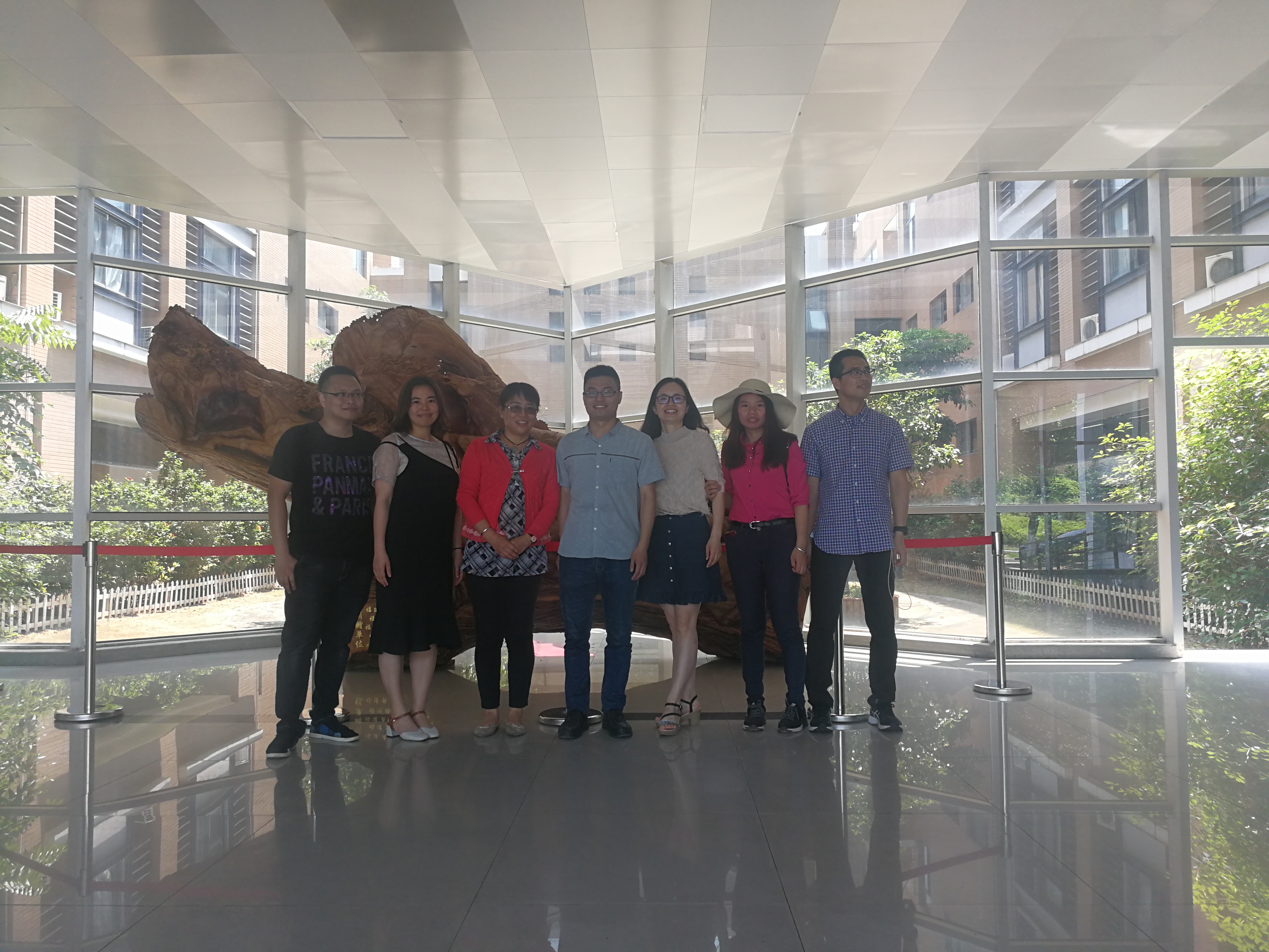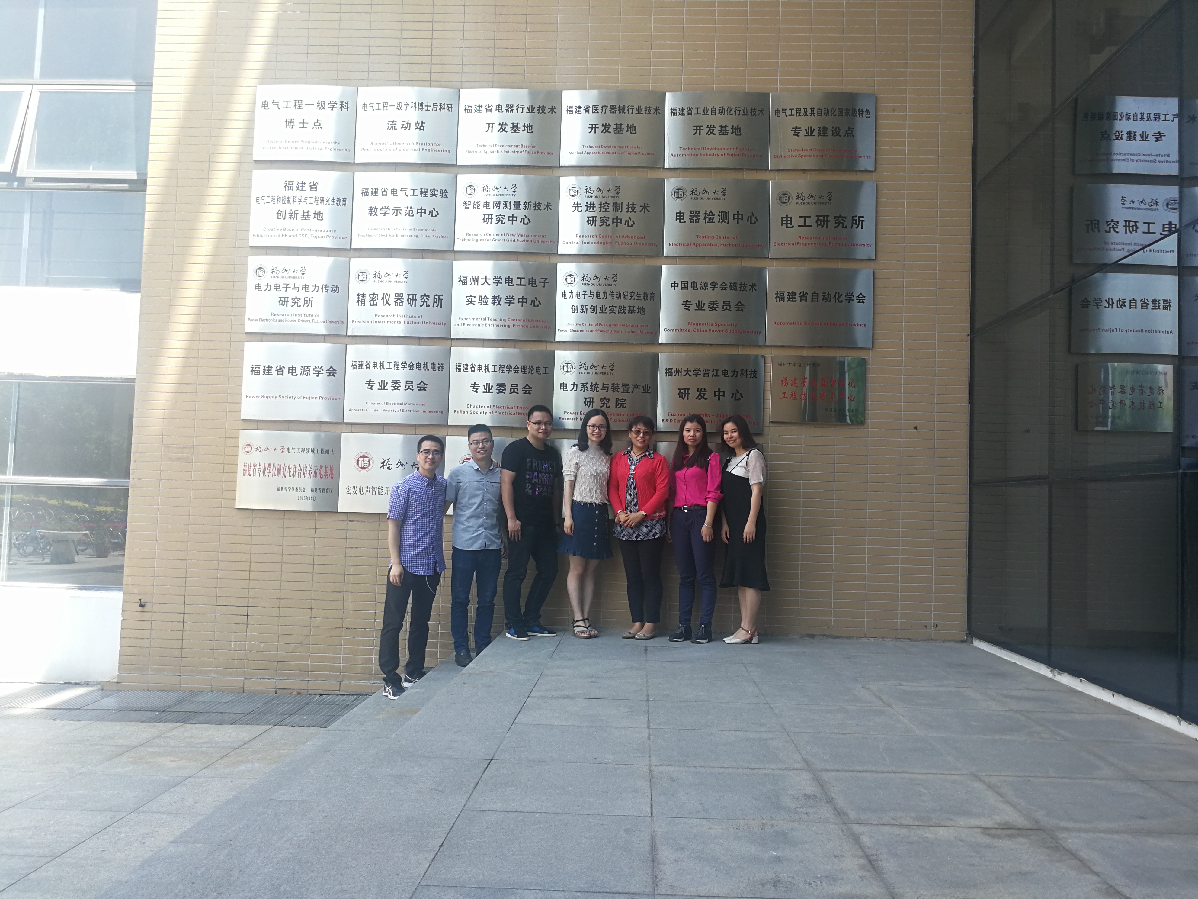 在几位校友齐聚福大后先自己组织一起骑共享单车,共赏福大近几年的变化。逛完校园后回到熟悉的学院楼,甚至回到熟悉的实验室,抚摸曾经的试验台。在大厅的木雕前,在学院楼的门口前,都有他们并排的身影。学院的咖啡厅、新楚楼前满墙的牌匾…让他们感叹学院变化之大,发展之快。