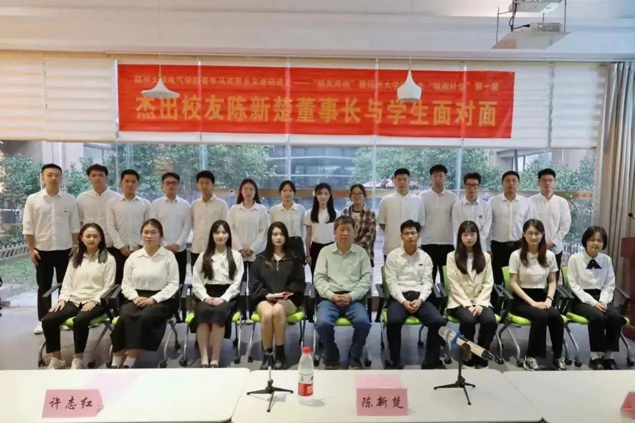 杰出校友陈新楚董事长做客青年马克思主义者研读社,与广大青年学生面对面展开交流,学院许志红院长、钟钛申副书记和福建中海创集团科技联络部韩欣彤总监出席座谈会。