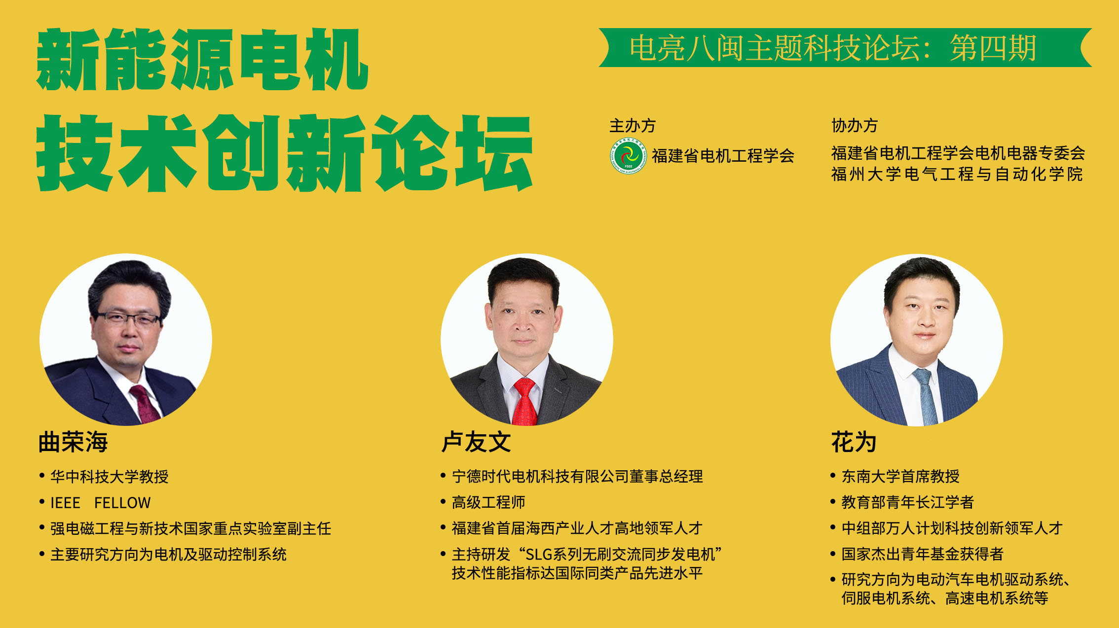 电机电器专委会组织的“电亮八闽主题科技论坛”第四期“新能源电机技术创新论坛”在中国知网直播平台顺利召开。论坛邀请了华中科技大学曲荣海教授、东南大学花为教授和宁德时代电机科技有限公司卢友文总经理做了主题报告。