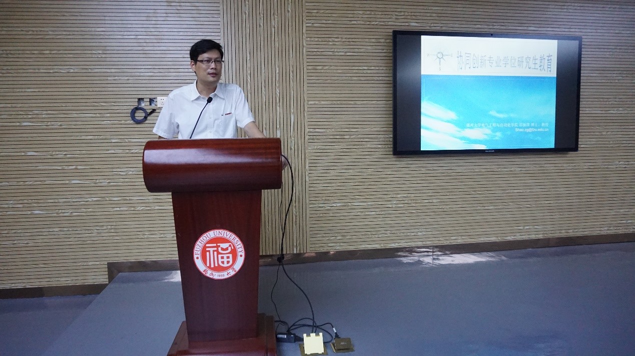 专业学位研究生企业导师聘任仪式暨第一届企业导师论坛在新楚楼北230隆重召开。本次会议由邵振国副院长主持,何希耕书记、黄国辉副书记、王武副院长、研究生院常凯副处长、康建山主任、全体专硕导师与2018级、2019级在校专硕研究生出席了会议。聘任企业导师分别来自国网福建电力有限公司(调度控制中心、电力科学研究院、三明供电公司、晋江供电公司)、江苏省如高高压电器有限公司、福州永福电力设计股份有限公司、福州万山电力咨询有限公司、厦门宏发电气有限公司、深圳莱福德科技股份有限公司、厦门士林电机有限公司、福建省宏科电力科技有限公司和(爱普)福建科技有限公司等企业。