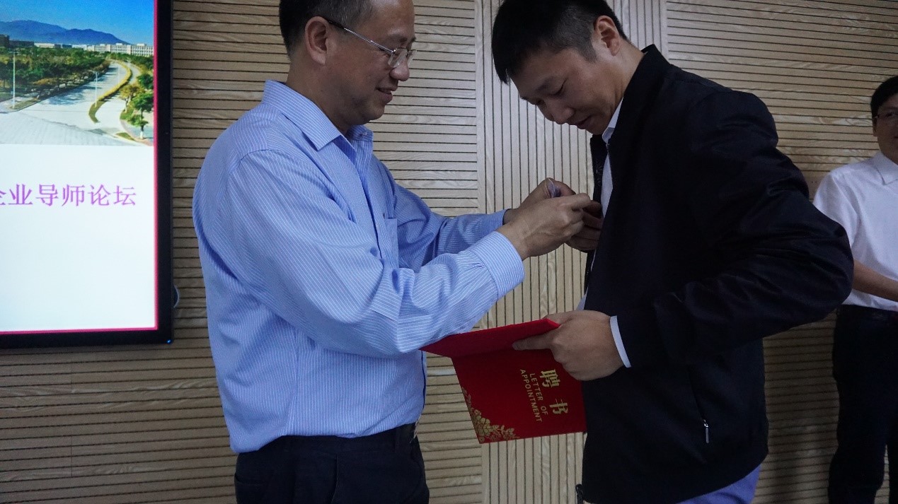 会议至中期,进行了企业导师聘任仪式。何希耕书记和邵振国副院长为各位到场的企业导师们颁发专硕企业导师聘书、佩戴教师校徽,并进行了合影。全体师生再次表示了对企业导师们的热烈欢迎。