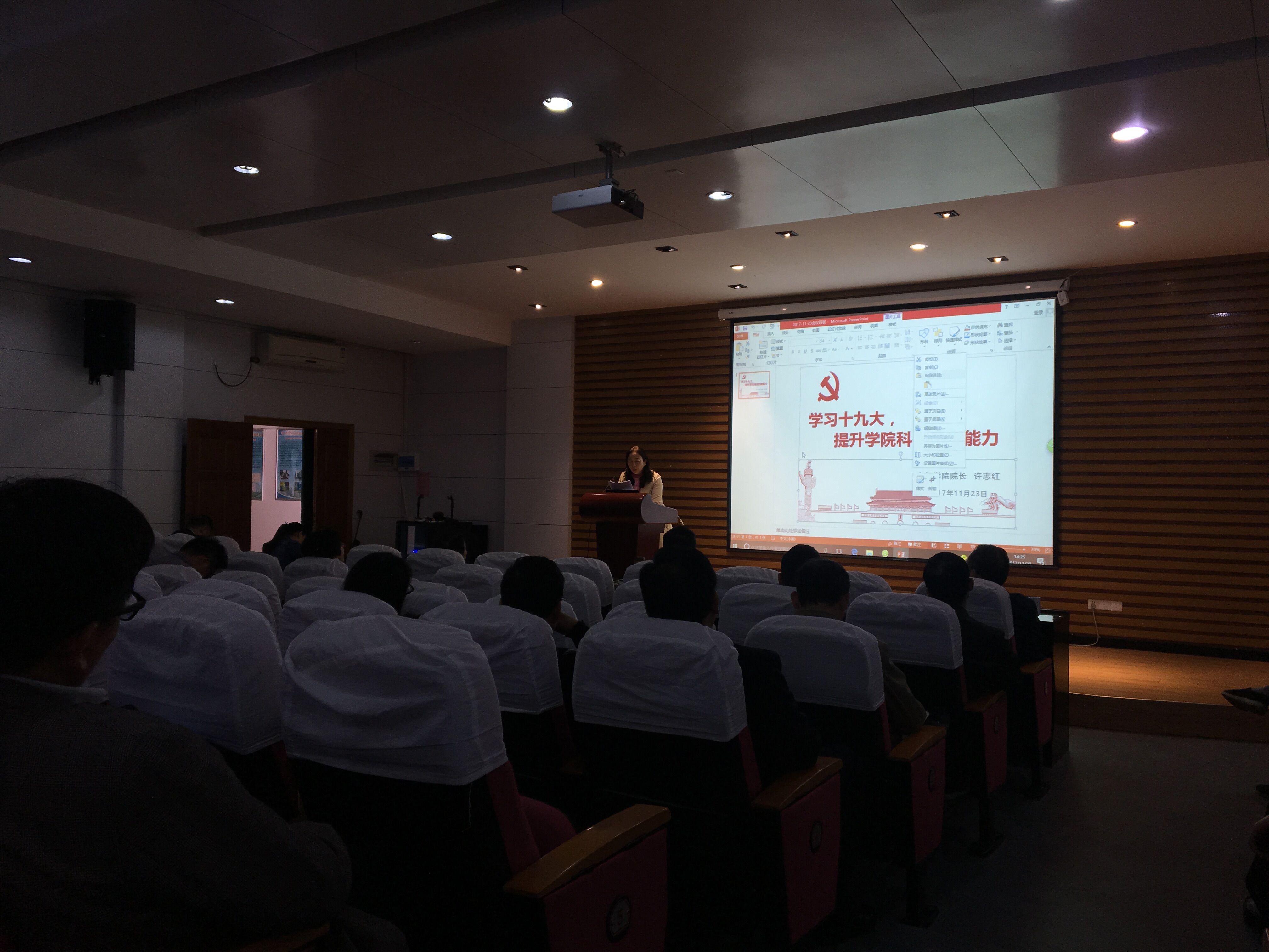 召开了“学习十九大精神,提升学院科技创新能力 ”学习报告会,会议由院长许志红教授作主题发言,全院教职工参加了会议。