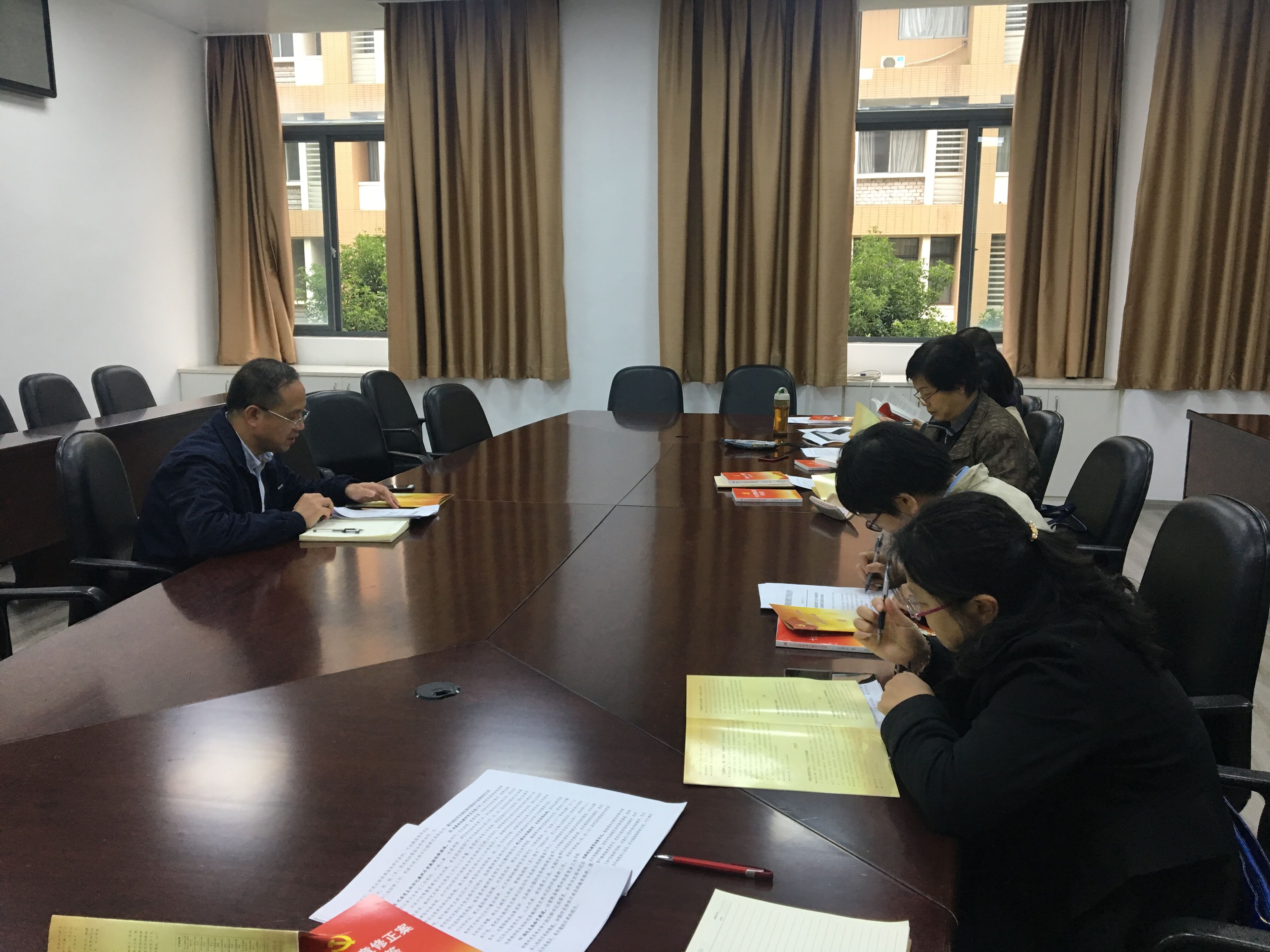 11月23日下午,正妹av 党委书记何希耕主持召开了教工支部书记专题学习会议。会上,与会人员认真学习了《党的十九大报告学习辅导百问》、《十九大党章修正案学习问答》及《中共福建省委教育工委关于加强新形势下高校教师党支部建设的实施意见》等相关学习材料。何书记就新形势下高校教师党支部建设的一些要求进行了部署,对教工支部书记提出了相应的要求。会议还部署了学院十九大i学习系列活动的安排。