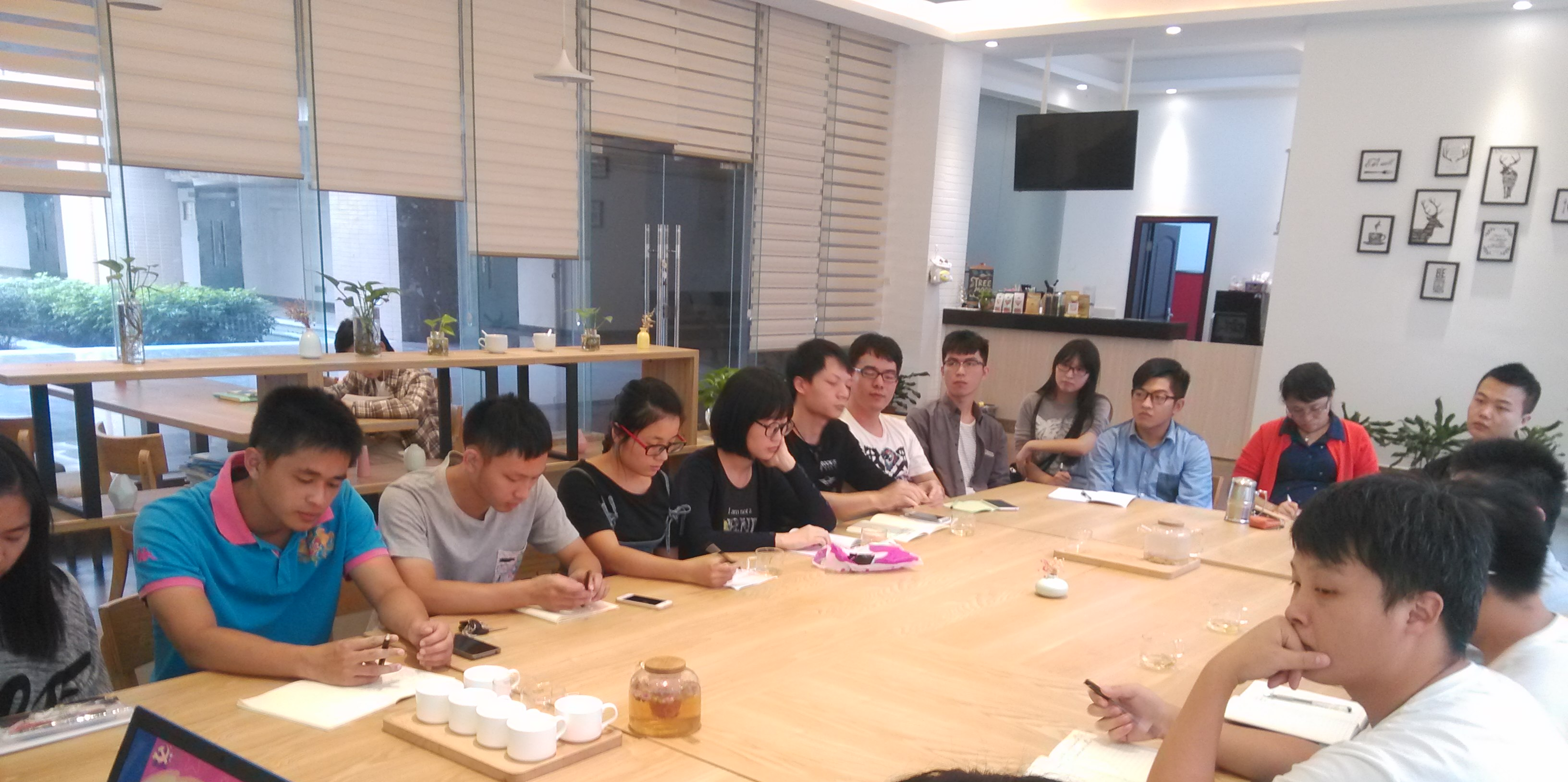 一楼咖啡厅召开。此次会议由支部书记刘秋花同志主持,研究生辅导员许海燕老师出席会议,电气工程第三研究生党支部22名党员同志参加会议。会议的主要内容为新老生党员同志见面交流、学习长征80周年纪念及学习十八届六中全会精神以及组织党员同志们围绕“坚持根本宗旨,发挥党员作用”进行讨论学习。