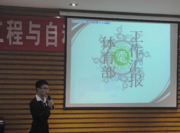汇报从为学生就业服务的学生职业发展协会开始,到展示体育大餐的体育部,再到作为枢纽部门的秘书处和宣传部,17个部门依次有序地报告本部门该年度所举办的品牌特色活动与部门建设,以及取得的成绩。其中,倡导“家文化”的楼委会通过趣味问答的形式展示了部门的特色创新,而组织部则以游戏版的部门汇报吸引了观众及评委的眼球,颇具观赏性。各个部门的精彩汇报赢得了观众的阵阵掌声。最后,潘志辉老师和沈庆斌老师分别上台作总结发言,表扬了各部门一年来的辛苦付出,并对各部门今后的发展提供了一些建议,鼓励各部门再接再厉。