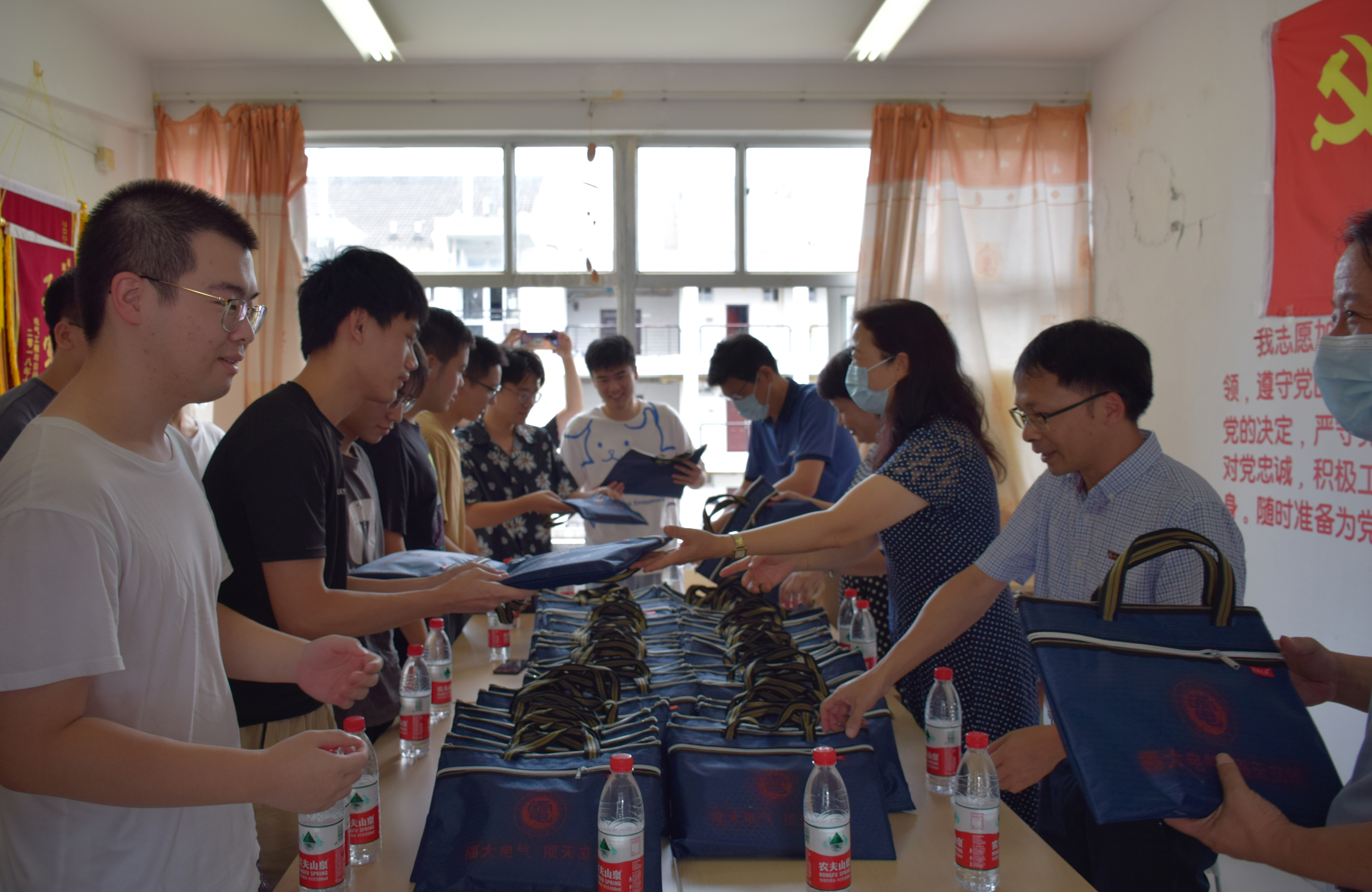 学院领导详细了解同学们在备考期间的学习、生活情况和存在的问题、困难,并现场给与解答解决。了解到不畏酷暑按计划取得复习进展时,占永琼书记鼓励同学们坚定信心和目标,继续发扬艰苦奋斗、自我超越的精神,扎实复习准备。在了解到同学们在活动室复习存在高温炎热的困难,许志红院长当即提议现场党政会议讨论并决定立即给复习室配备制冷设备。学院领导们还给同学们分析了今年的考研形式并提出了指导建议,同时也对同学们在校期间关于疫情防控、安全纪律等方面再次进行明确要求。座谈后,与会领导老师向同学们发放了精心准备的备考礼包表示慰问,为同学们加油助力。