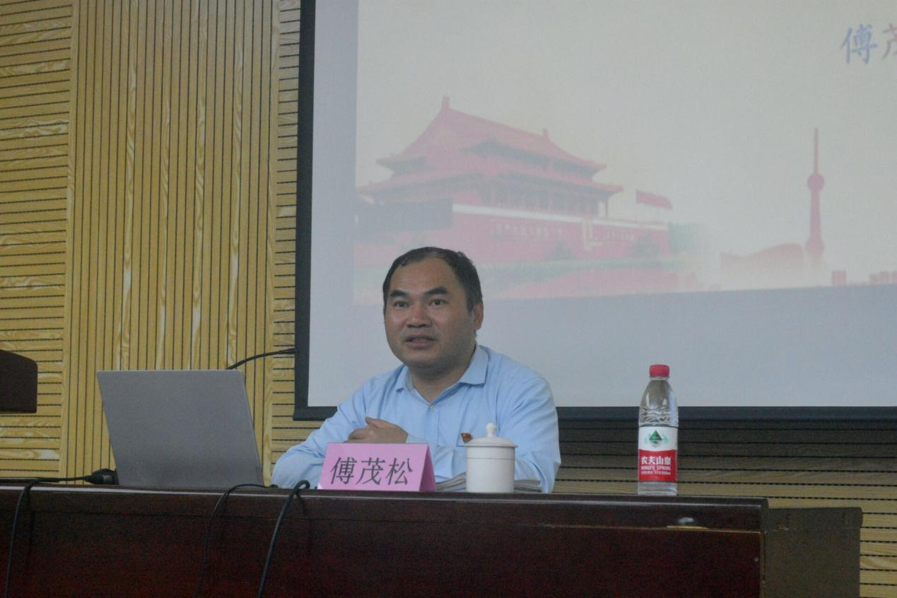 分党校第31期入党积极分子培训班第二讲《学好党章,积极向党组织靠拢》在新楚楼北230报告厅举行,计算机与大数据学院党委副书记傅茂松老师为本期入党积极分子学员授课,旗山铜盘两地同步进行。