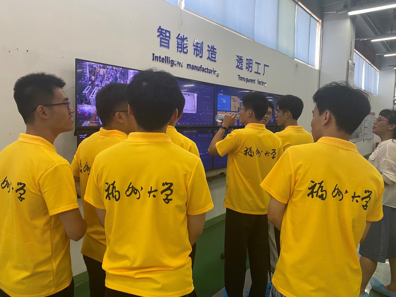 实践队历经2个多小时抵达了科华数据股份有限公司。人力资源钟晓容女士对福大师生的到来表示热烈欢迎,并与福大师生进行了深切交谈。安排集体用餐和稍作休息后,在福大校友的带领下,实践队参观了科华展厅和大功率车间。