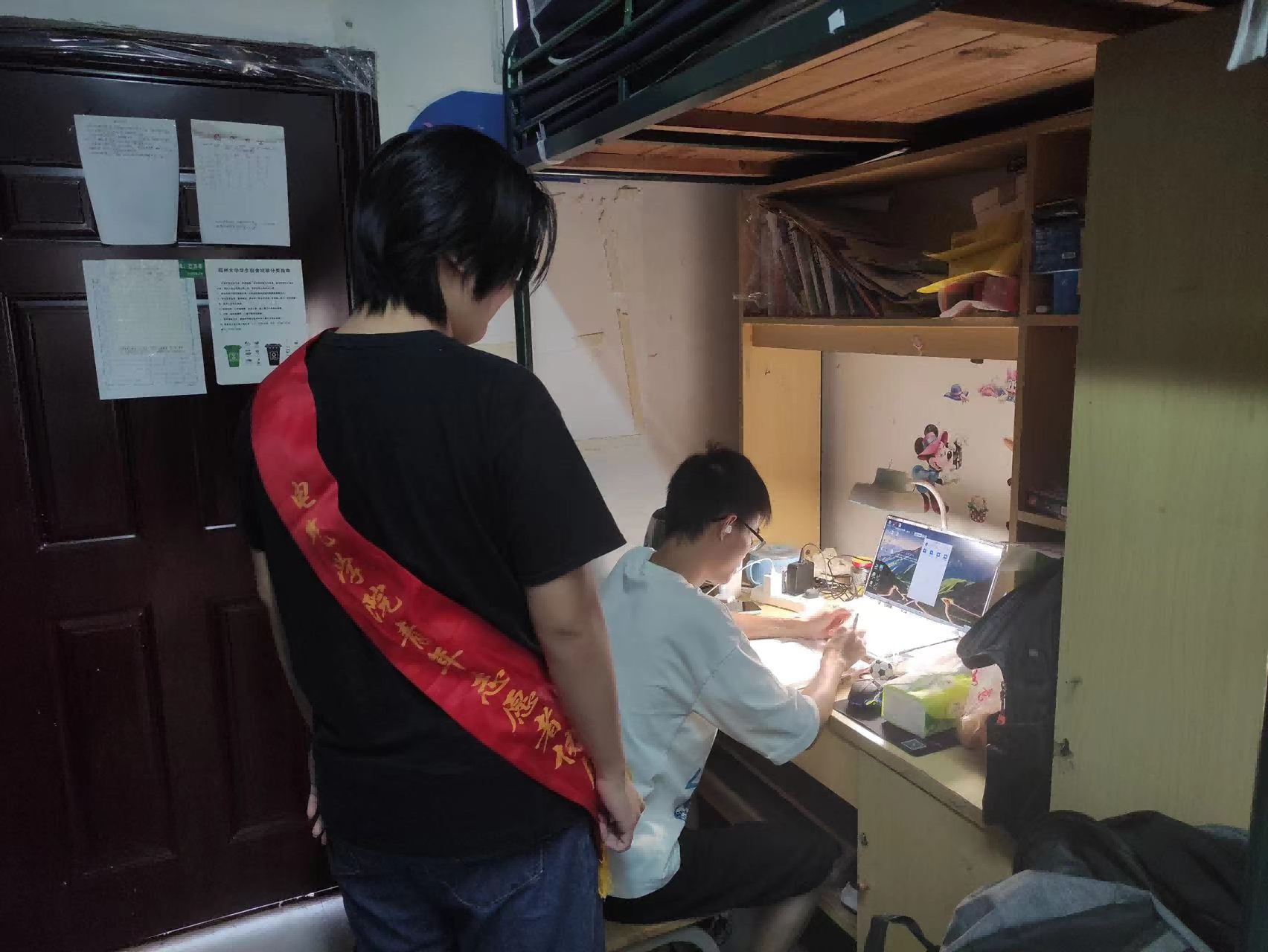 实行研究生助教学风督导。通过线上点名考勤,线下集中网课督导巡查的方式,帮助同学们线上教学不怠惰,养成良好的线上学习习惯,提升线上课堂效率,做到“防控学习两不误,学习充电不间断。”
