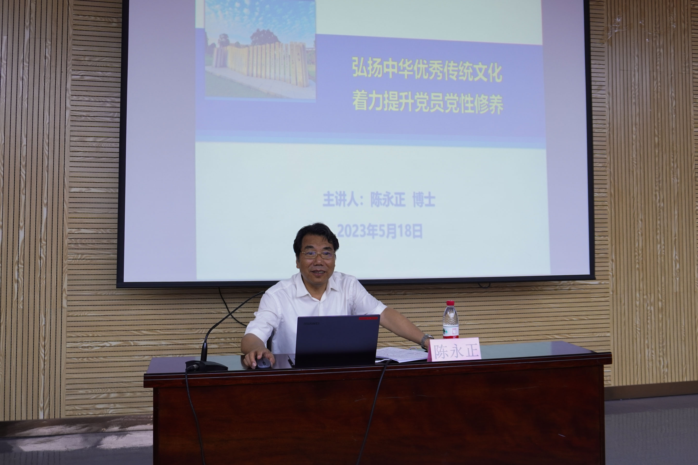 原党委书记陈永正教授为师生党员作《弘扬中华优秀传统文化,着力提升党员党性修养》专题报告,学院院长许志红主持报告会,学院党委委员、教工支部书记、学生党员出席本次报告会。
