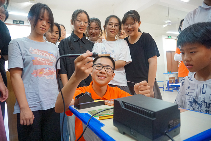 团委、学生会学生骨干组建的实践队走进福建省福州市闽侯县溪源江,对“溪源江流域—闽侯县—上街镇段河长制的推行情况”进行调研和分析,队员们采用河流分段采样法对上游、中游、下游三个区域进行取样,通过调查问卷和访谈相结合深入调研溪源江流域河长制的推行情况,了解相关部门针对农业污染和生活污水等问题采取的一系列积极措施及成效,同时实践队还与当地志愿者组织展开合作,让无人船移动在线监测系统对河流湖泊进行全面、实时的水质监测,为水资源管理提供科学依据。实践队申请“水质采样监测无人船操控系统”软著1件,“智慧河长巡河装置”实用新型专利1件并创作文创产品(河小禹T恤)1件,形成的《基于河长制推行情况的点差研究——以福建省福州市溪源江上街镇段为例》调研报告成果被闽侯县河长办公室采纳。实践活动得到学习强国、中华网,中国网、中国日报、中青校园、搜狐、网易等媒体报道。