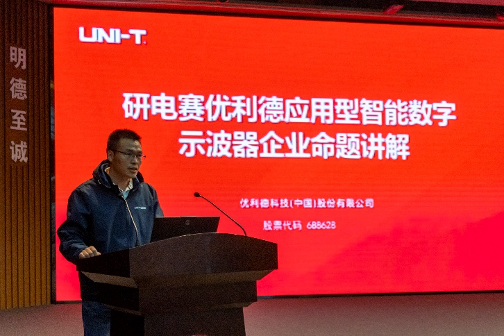 最后,企业代表优利德销售经理张永钗先生对企业命题内容进行了详细解析。他向在场的师生介绍了企业在技术储备、核心产品线、奖项设置以及技术开发方法和思路等方面的相关情况,为师生们提供了宝贵的创作思路和资源信息。他的讲解为师生们的学术研究和项目开发提供了有力的支持。