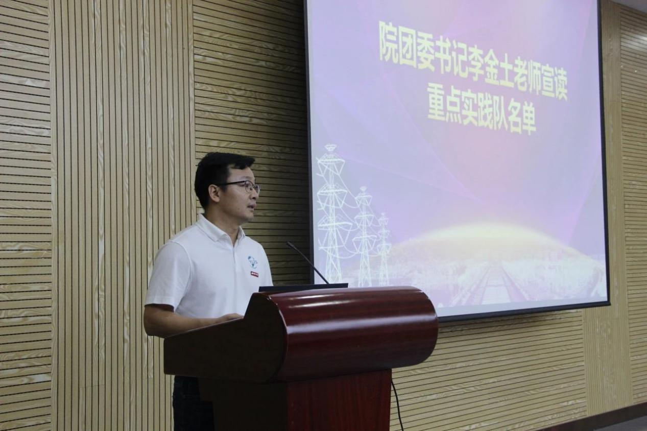 院党委书记潘志辉老师在讲话中指出,社会实践活动是大学生融入社会大课堂、了解社会生活生产的重要平台,是对课堂教育教学的有效补充和拓展延伸,是当代大学生健康成长、成熟、成人乃至成功的必经之路。为引导和帮助同学们上好与现实相结合的大思政课,在社会课堂中受教育、长才干、做贡献,潘书记向各实践队提出三点期望与要求:一是希望同学们“深入国情社情,感知时代发展”,发挥电气人“顶天立地”的精气神,不忘初心,牢记使命,争做时代的弄潮青年;二是希望同学们“深耕基层实践,传播中国故事”,心怀“深入基层,大有作为”的电气情怀,走向基层,服务基层,向基层群众学习,谱写中国基层新故事;三是希望同学们“深植家国情怀,绽放青春梦想”,培养自身的创新能力、合作精神、文化自信,彰显青年学生的时代担当。最后,潘书记向同学们致以美好的祝愿,希望同学们能真正做到把所学知识同社会实践紧密结合,实现学以致用、知行合一,充分展示电气青年“顶天立地”的风貌和担当,以实际行动与优异成绩献礼中华人民共和国成立75周年,做青春为中国式现代化挺膺担当的时代青年。